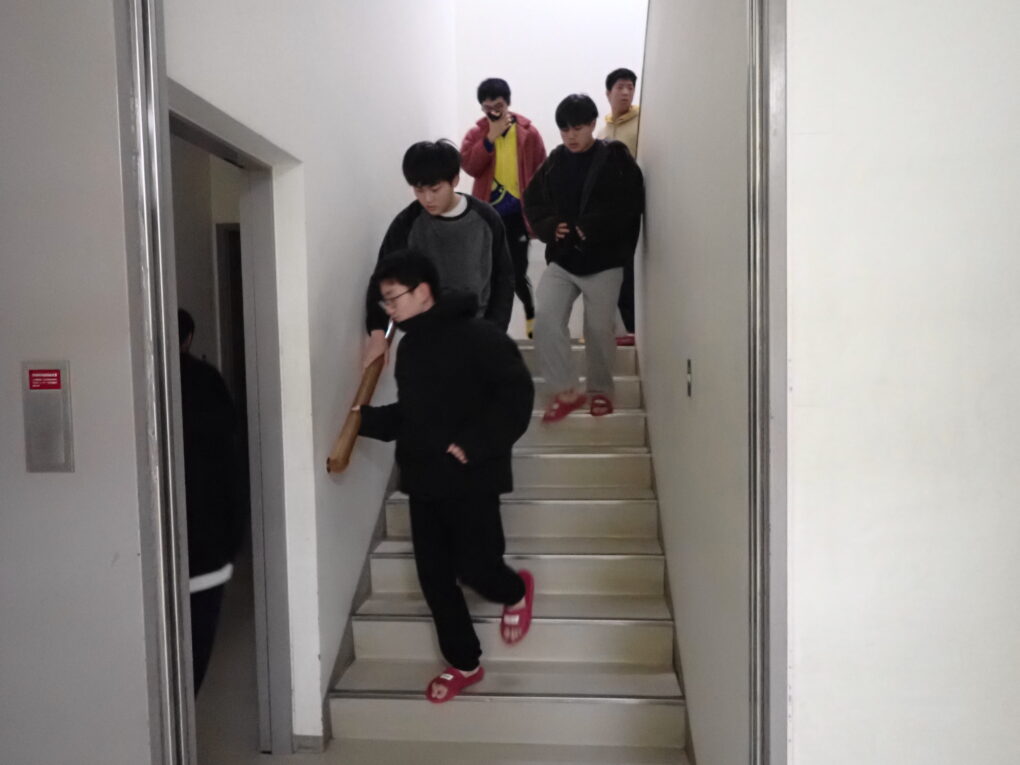 【黒潮寮】防災訓練 寄宿舎(黒潮寮)20:00栗田地区に震度6の地震発生。 2026.03.19 3月10日(火)、黒潮寮にて防災訓練を実施しました。 20:00栗田地区に震度6の地震発生。 地震直後に舎室の入口を開け、避難経路を確保していました。 揺れはおさまったが、厨房より火災発生直ちに格技場に避難します。 避難場所では、寮長副寮長が点呼。 寮長が的確な指示を出し、寮生は緊張感あふれる行動をとっていました。 本校防災担当の先生より、黒潮寮防災訓練についての講評をしていただきました。 Post Views: 6