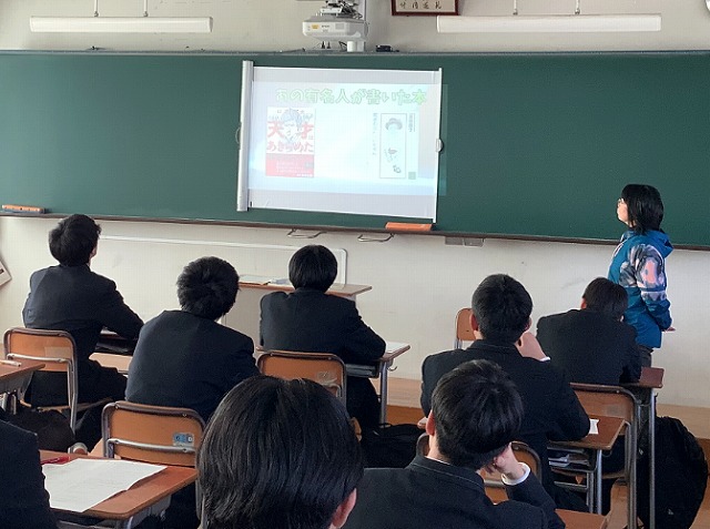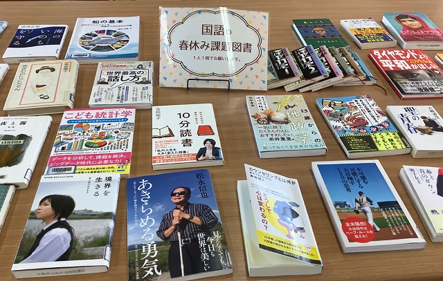 【図書館】春休みはノンフィクションにふれてみよう! 図書館 2026.03.18 国語科の春休みの宿題は、読書レポートです。80冊のノンフィクション本の中から1冊選び、本を読んで興味を持ったこと、本から得た学び等をレポートします。海洋高生のために厳選された80冊です。 ピックアップした本をジャンル別に紹介する動画を視聴し、本選びの参考にします。 図書館で課題図書を借ります。リストに書かれた紹介文を参考に、各々の興味に合う本を探しています。 Post Views: 5