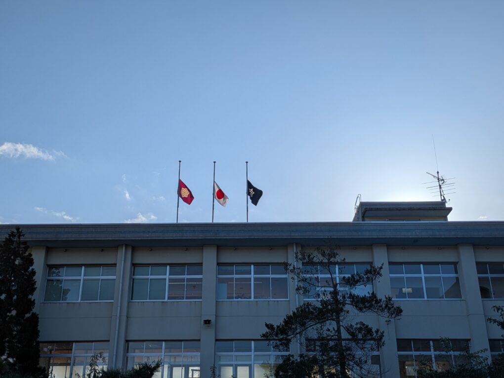 令和8年3月11日(水)、東日本大震災発生15年となるこの日、本校においても半旗で弔意表明をしました。