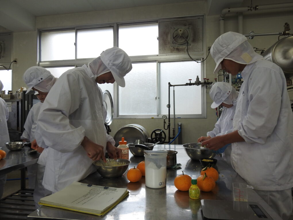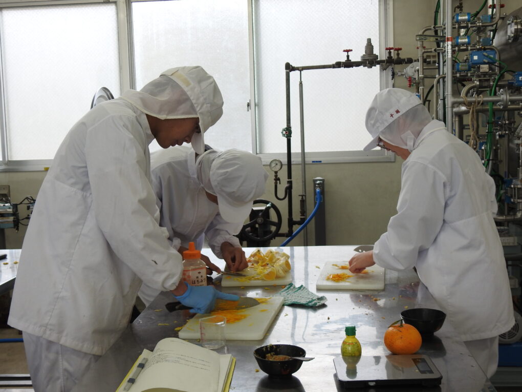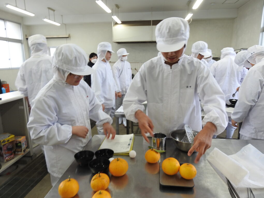 3月12日(木)、食品経済コース2年生の「総合実習」において、地元の生姜、夏みかんを活用して製造実習に取り組みました。