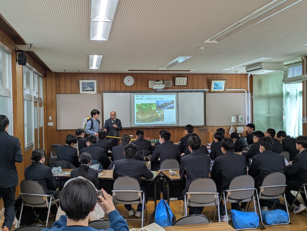 3月10日(火)、講師として近畿大学農学部水産学科 准教授 亀甲 武志先生及び研究室の学生の皆さんにお越しいただき、海洋科学科及び栽培環境コース2年生を対象に魚類養殖講演会をお世話になりました。