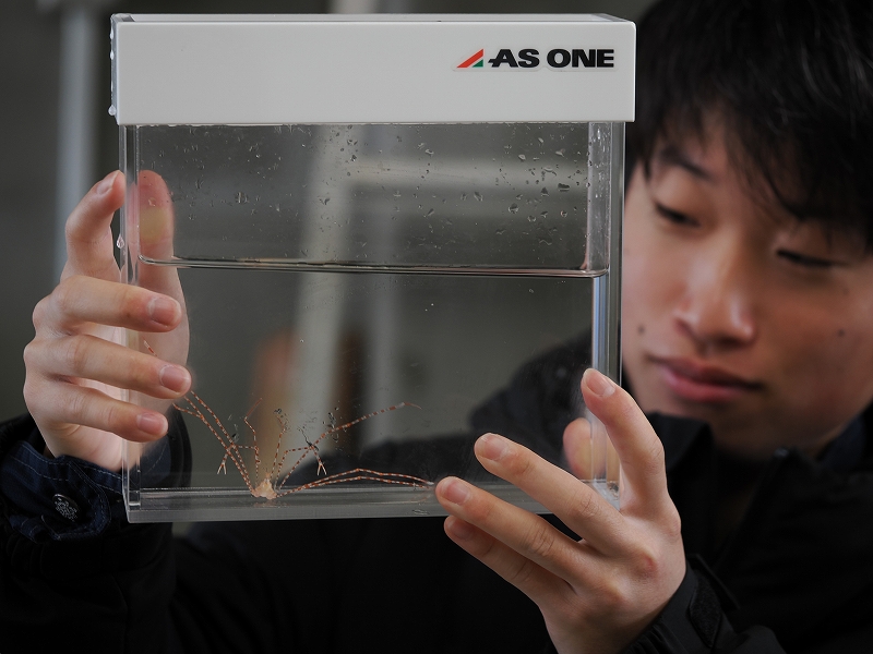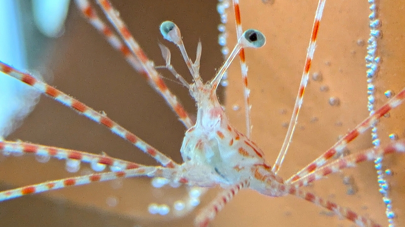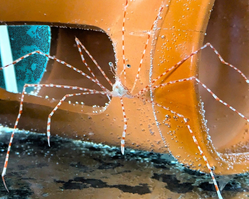 脚が細長く弱いため、全ての脚がそろった生体が飼育・展示されることはまれです。