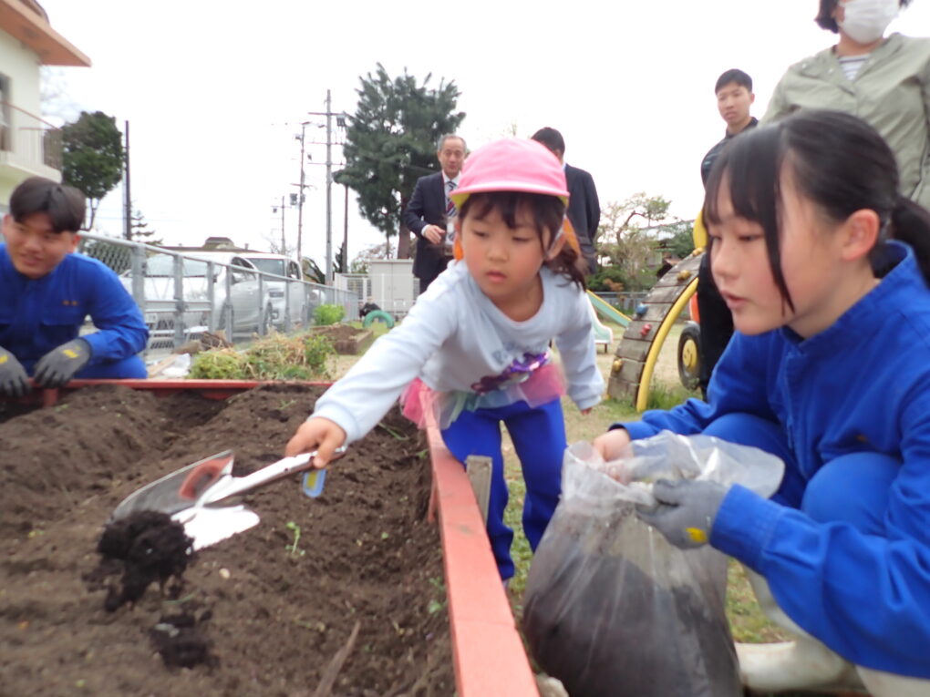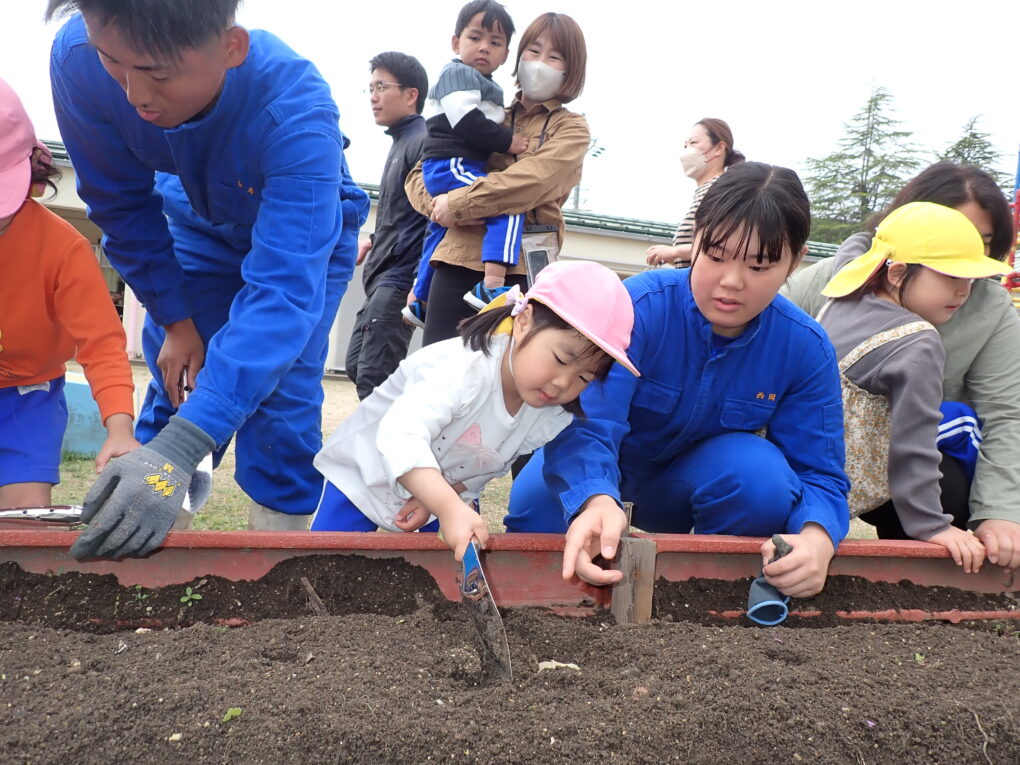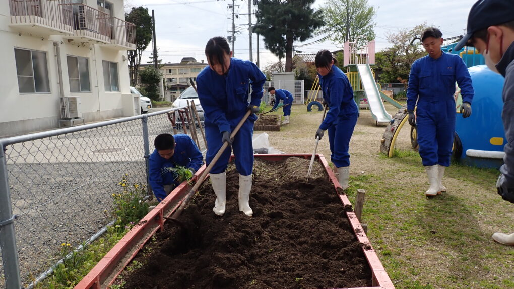 【海洋技術コース】栗田幼稚園にてじゃがいも定植(3年生海洋技術コース) 海洋技術コース「仕事は段取り8割!」を合言葉に役割分担をしました。 2026.04.20 4月13日(月)、海洋技術コース3年生が宮津市立栗田幼稚園の園児と一緒に栗田幼稚園にてじゃがいもを植えました。 「仕事は段取り8割!」を合言葉に役割分担をしました。 まずは畝づくりです。 元気いっぱいの栗田幼稚園児とオープニングセレモニーです。 一個ずつ丁寧に植えました。 最後に本校特製「オリーブ堆肥」を表面散布しました。 楽しい時間はあっという間でした。栗田幼稚園の皆様ありがとうございました。 Post Views: 10