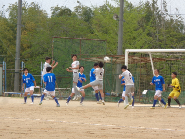 4月19日(日)、京都府立福知山高等学校グラウンドにおいて、両丹高等学校サッカー選手権大会1回戦が行われ、国立舞鶴工業高等専門学校と対戦しました。