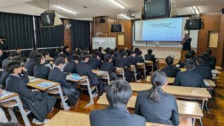 2月4日(水)、海洋科学科2年生及び次年度海洋科学科に所属する1年生が、大学進学が決定した海洋科学科3年生の柴田一吾さん(東京海洋大学海洋生命科学部海洋生物資源学科)から合格体験談(進路メッセージ)を受けました。 進路先を早めに調べて行...