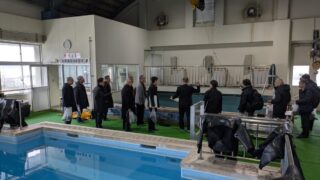2月12日(木)、京都府域の企業経営者で構成される経済団体の一般社団法人 京都経済同友会から約20名が本校をお訪ねいただきました。 学校概要紹介の後、水中施工実習室(潜水プール)、栽培漁業実習棟、実習船「みずなぎ」などを御視察いただきま...