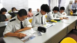 1年生部員は、初めて手に触れるシロシュモクザメに感動し、興奮気味でした。