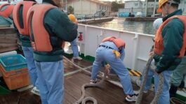 12月4日(木)、航海船舶コース2年生によるキャリアトライアル(実習船「みずなぎ」による乗船実習)で海洋調査を行い、生徒たちも少しずつ船の作業に慣れながら実習に取り組むことができました。