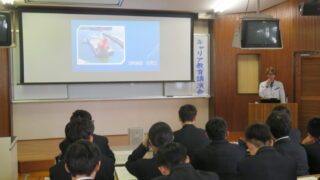 10月14日(火)、宮津市立栗田中学校2年生の皆様が来校され、キャリアプランニング・サポートの一環で、栽培漁業実習棟の見学と海の酸性化についての講義を行いました。実習では、サザエの真珠層の取り出し体験などを実施しました。