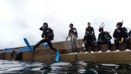 海洋散歩 ダイビング 9月18日(木)、海洋技術コース2年生の「ダイビング」授業の様子です。 セルフチェック・バディチェック後に海面を確認し、片足を大きく踏み出してエントリーしています。 本時は、本校桟橋周辺の海面で、中性浮力の維持と保針をテーマに取り組みま... 2025.09.20 海洋散歩