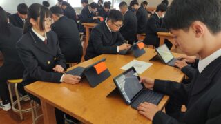 新入生の部活動体験を実施中。この日の練習は瞬間的な氷雨が降りました。しかし、晴れ間には虹の架が・・・!美しい光景に、思わず見入ってしまいました。