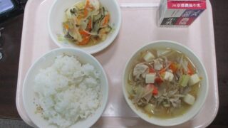 2月6日(金)の給食は、「あじわいランチ給食」でした。本日の献立は、綾部市の特産品でもある"小畑みそ"が入った「小畑みそのこくうまみそ鍋」と、児童生徒のリクエストメニューである「白身魚の甘酢あんかけ」とごはんと牛乳でした。  こち...