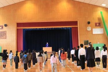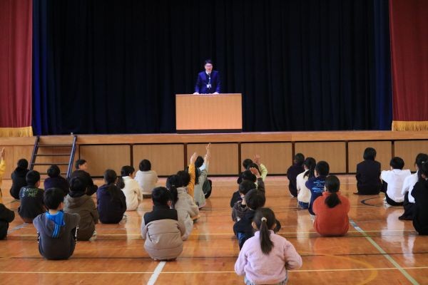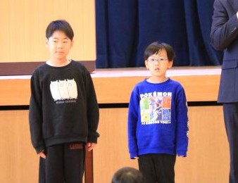 校長式辞では、2学期の行事や取組、日常の様子を思い出しつつ、自分にとってどのような2学期だったのかを振り返る時間も取りました。マラソン選手であった君原健二さんの話を交えつつ、自分なりの目標を持つことや、毎日小さな目標を決め、それをスモールステップでクリアしてゴールに近づいていくという話をしました。このことが子どもたちの意識の中に残り、実際にやってみる子どもが一人でも多くいたらいいなと思います。