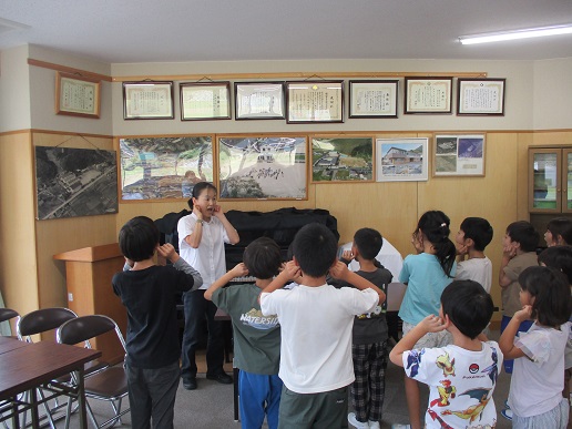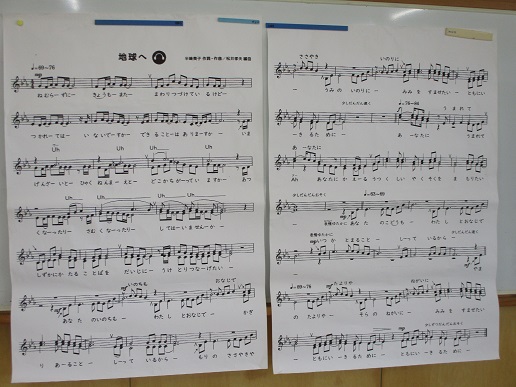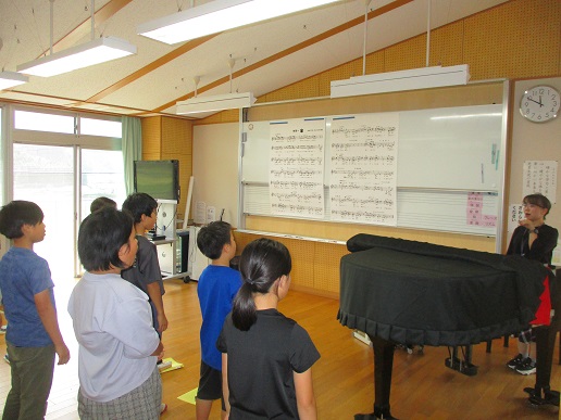 全校音楽(小学生) 学校・子どもたちの様子 2025.10.06 11月2日(日)に開催する上林フェスティバル、11月6日(木)の小学校音楽交流会で発表する合唱の練習が始まりました。最初は小学生全員が集まり、その後、1~3年生と4~6年生とに分かれての練習となりました。 今年の合唱曲は「地球へ」です。音取りをし始めたところなのでまだ最後まで歌えませんが、これからの練習の積み重ねにより、だんだんと上手になっていくことでしょう。校舎内に子どもたちの歌声が響き、とても心地よいです。本番の歌声が今からとても楽しみです。