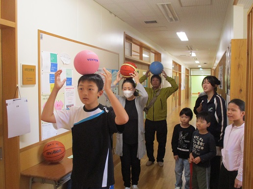 「頭にボールを乗せて5歩歩く」・・・む、むずかしいっ!!