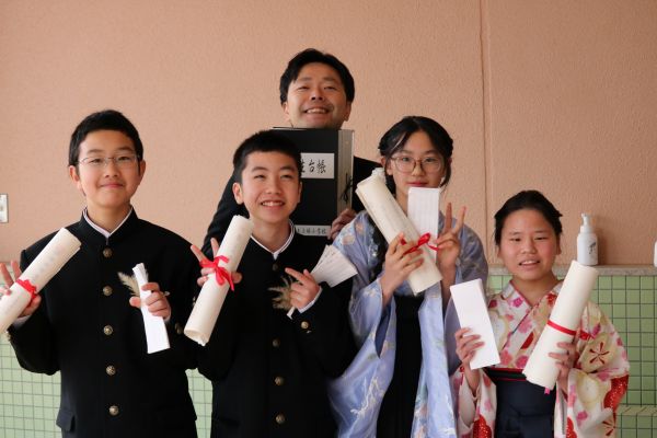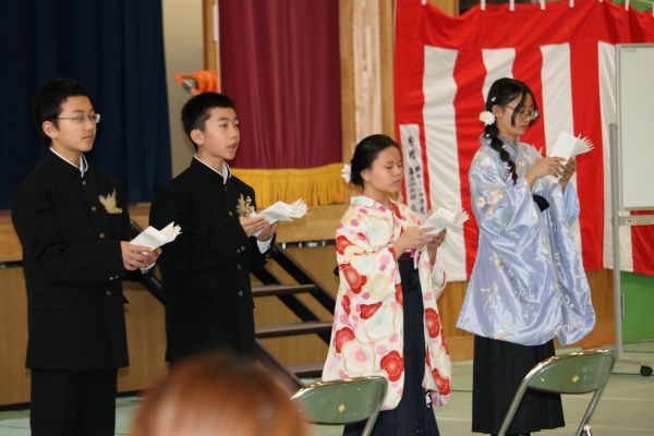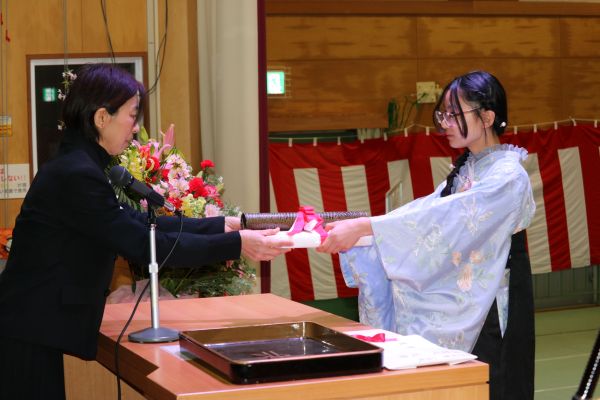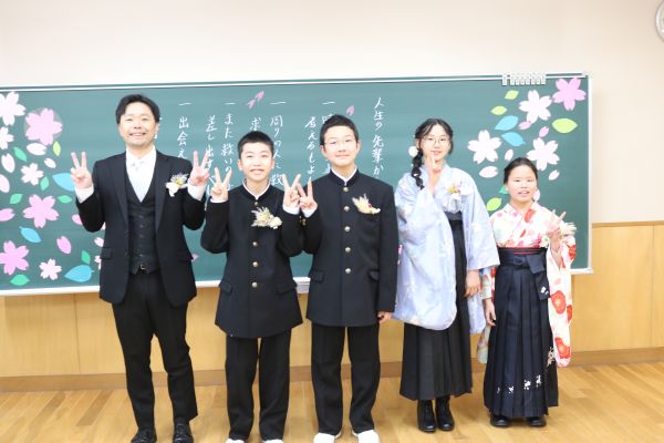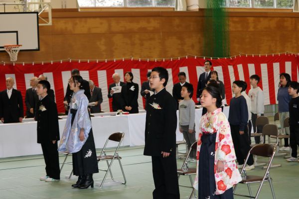 今年の小学校の卒業生は4名。それぞれが少し緊張しながらも、晴れやかな表情で証書を受け取り、6年間の成長を感じさせてくれました。式の中では、在校生と卒業生それぞれが心を合わせて歌声を響かせ、その澄んだ音色が体育館いっぱいに広がりました。やわらかな歌声に思わず胸が熱くなるひとときでした。式全体は厳かな雰囲気の中にも温もりがあり、子どもたちの門出を優しく後押しする時間となりました。