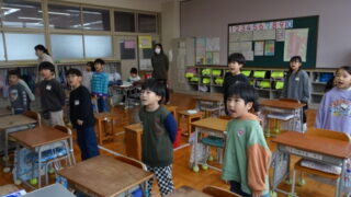 最近の上川口小 歌練習始まりました 6年生の「出発を祝う会」に向けて全校合唱をします。朝の会が始まると各教室から歌声が聞こえてきました。映し出された歌詞を画面で見ながらメロディーや歌詞を覚えようと練習の毎日です。6年生に気持ちを届けるためにがんばっています。そして、6年生は... 2026.01.27 最近の上川口小