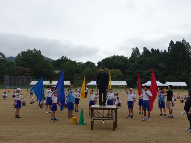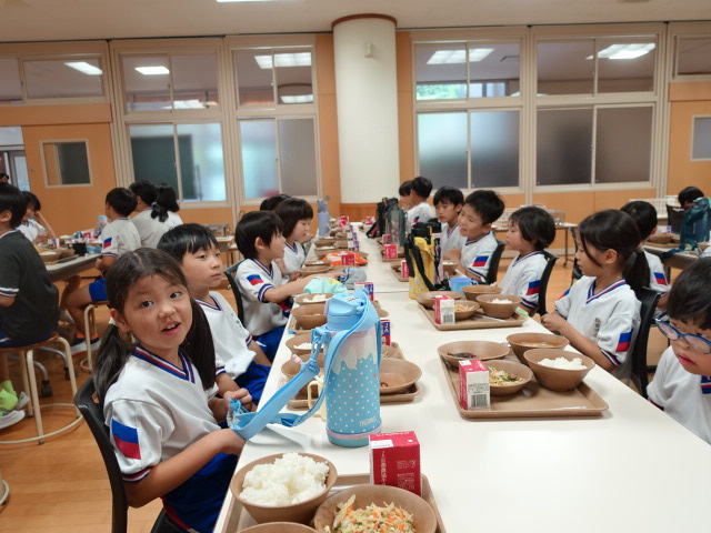 開会式・閉会式の練習は何とかできましたが小雨が降りはじめ、体育館での練習となりました。小中でいっしょにする競技の練習は行えませんでしたが、本番はきっとしっかりできるでしょう。初めて中学校で給食を食べ、嬉しそうでした。いよいよ「みんフェス」来週です。
