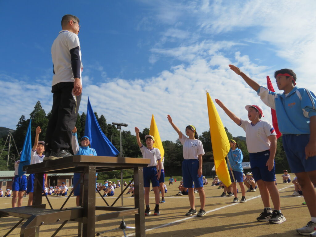 青空の下、第5回みんなのスポーツフェスティバルを無事行うことができました。子どもたちが生き生き一生懸命に頑張る姿が感動を呼びました。平日開催にもかかわらず多くの方々に見に来ていただきよかったです。また今年度は校区の保育園児、地域の方々にも参加をしていただき一緒に競技を通してより一層温かい雰囲気になりました。小中学生が互いに応援し合いPTAや地域のみなさんと協力しながら作る「みんフェス」。今年度もみんなの笑顔を生み出す行事となりました。