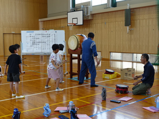 地域の学習で今年度も野花太鼓について3年生が学習します。地域の方にゲストティーチャーに来ていただき、野花太鼓の歴史について話を聞いた後、さっそく太鼓を叩いてみました。なかなか難しいリズムですが、子どもたちは覚えが早いです。すごい集中力で「早く打てるようになりたい」という思いが伝わってきました。