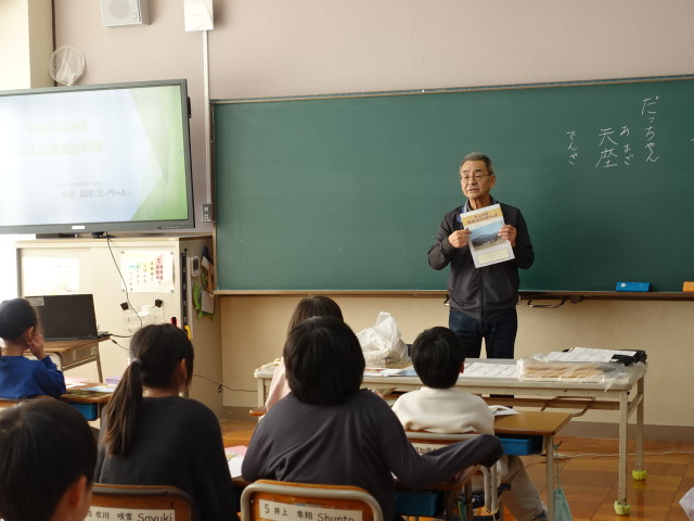 3年生が校区の天座地域について学習をしました。毎年お世話になっている安達さんに来ていただき、無形文化財になっている天座にまつわる踊りや鬼伝説について教わりました。目の前でびんささらを初めて見たり、さわったりして昔から伝わる文化に触れることができました。
