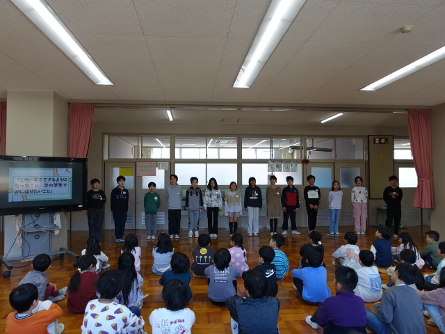 今日で全ての学年の発表が終わりました。最後は五年生で、1年間のまとめと来年度へ期待が込められた劇で締めくくりをしてくれました。次年度は最高学年としてがんばろうという気持ちが表れていました。感想交流では、この1年で付けた力と来年度がんばりたいことを話し合いました。自分の考えをみんなの前で話し、友だちの話をしっかり聞くという力がこの1年で伸びたと思います。ここからも身に付いた力を忘れず継続していって欲しいです。