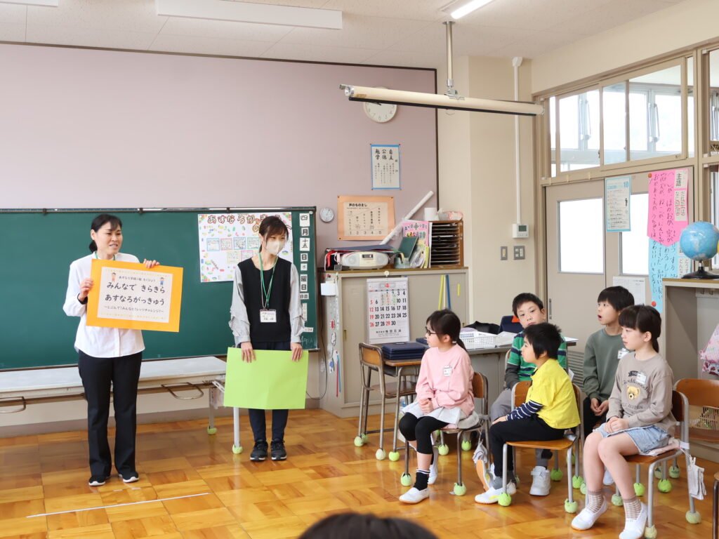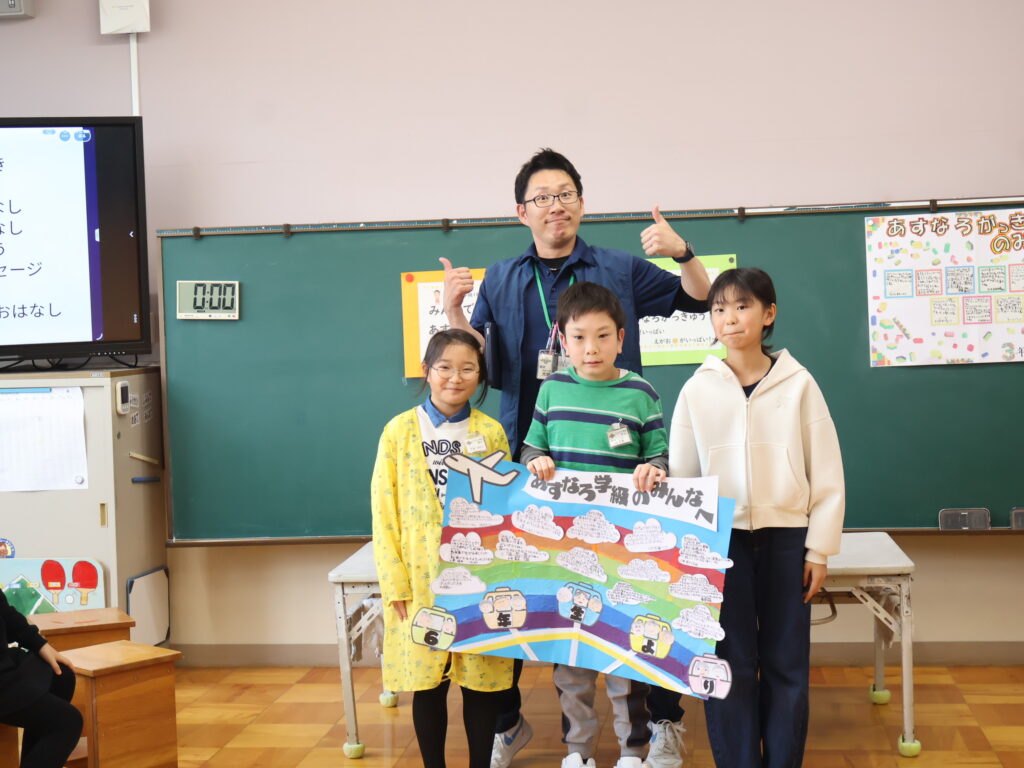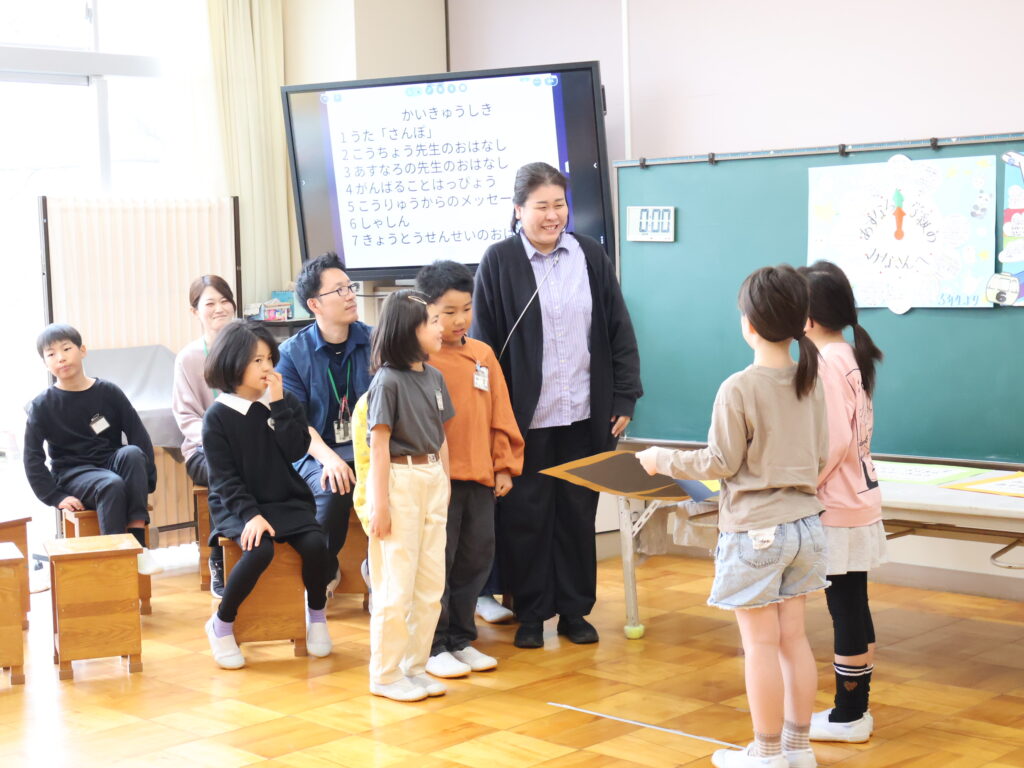今日はあすなろ学級の開級式でした。友だちが2人増え7人になり教室も増えました。7人仲良く力を合わせてがんばって欲しいと思います。今日は全校の友だちからのお手紙をもらったり、おうちの人からもメッセージをいただいたりし、嬉しそうな笑顔があふれていました。一人一人がんばることを発表し、色々なことにチャレンジするぞ!と目がきらきらしていました。がんばっていこうね。