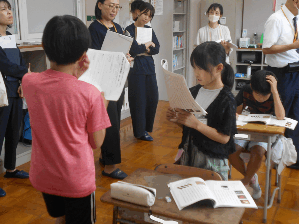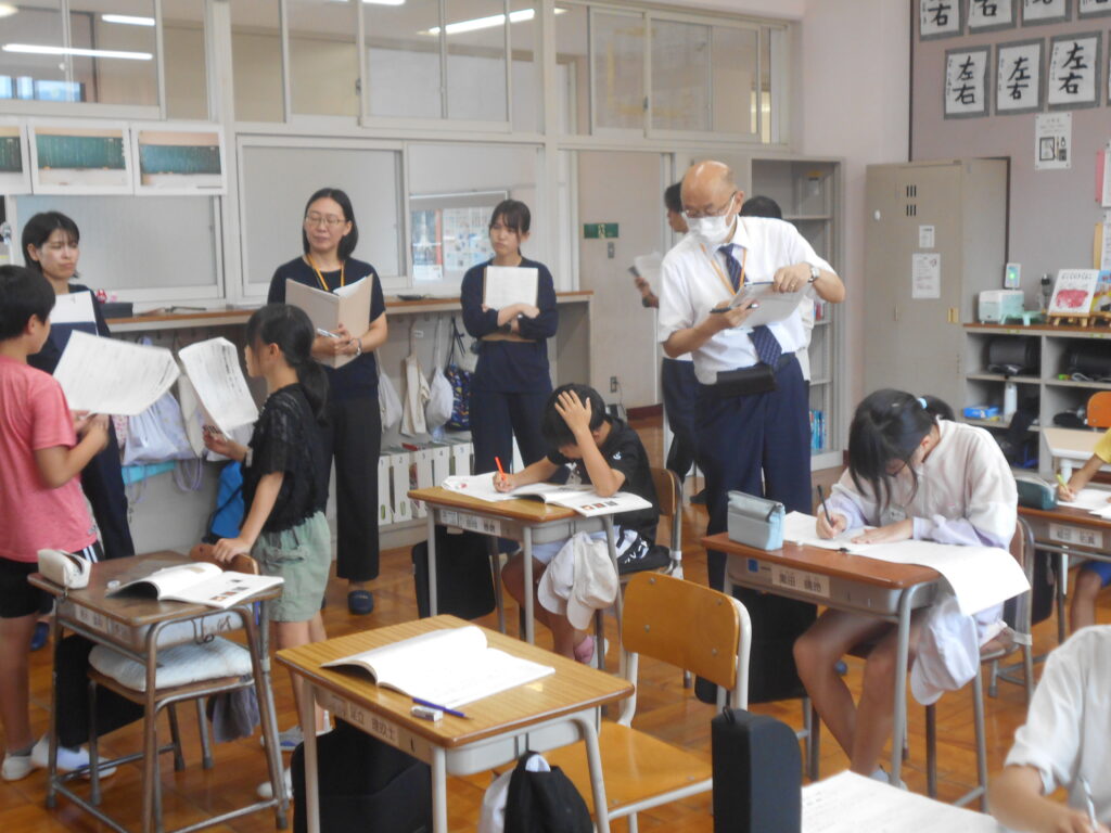 約30名の先生方に授業を見ていただきました。子ども達は初めは少し緊張していました。子ども達の下校後、今日の授業について参観された先生方と感想や意見交流を行いました。学習に向かう前向きな姿や、自分の考えを発表したり、話し合ったりする姿が素晴らしいと多くの先生方からほめていただきました。また、教室環境の美しさや、子ども達のまなびの姿が分かる掲示物、本の展示などについてもプラスのコメントをたくさんいただきました。