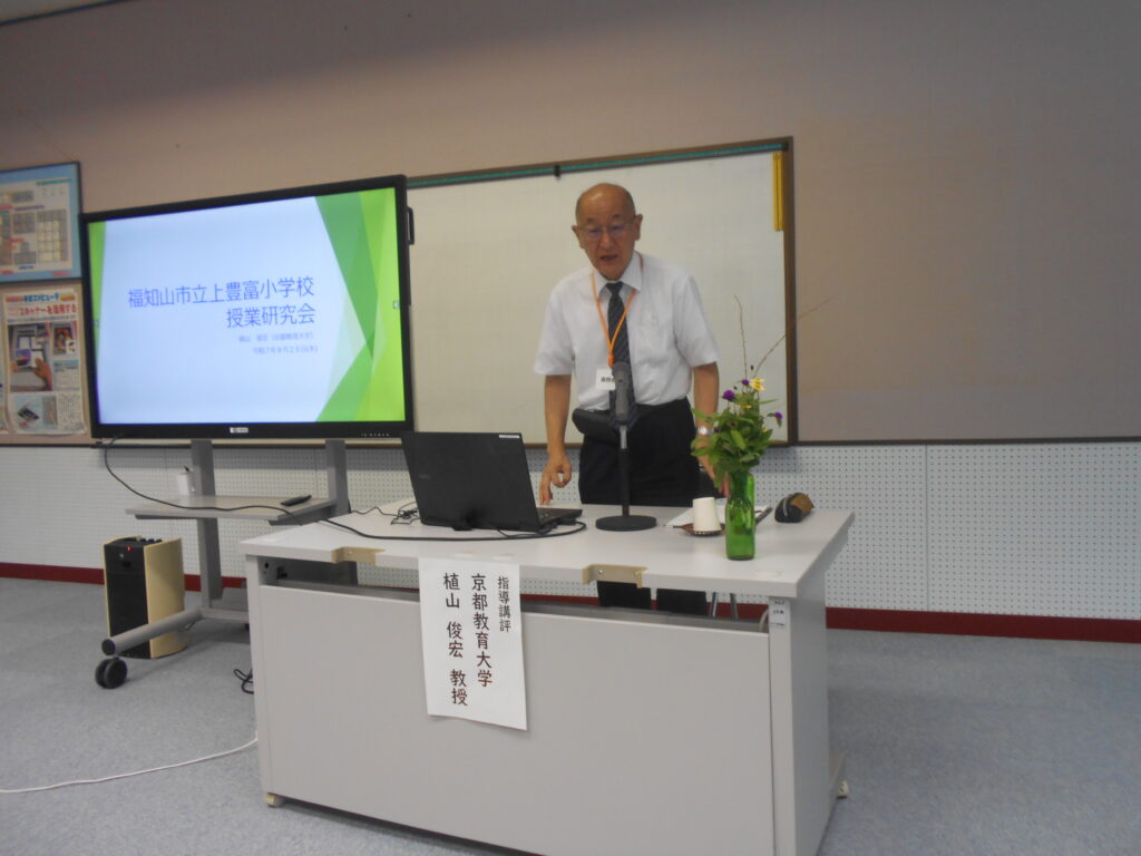 また、昨年度から京都教育大学の植山教授にご指導をいただいてきました。全体会で授業についての指導講評いただきました。「よいところを最大限のことばでほめる」「他者の学びを認め合える」力を育てていくことの大切さについてお話しくださいました。