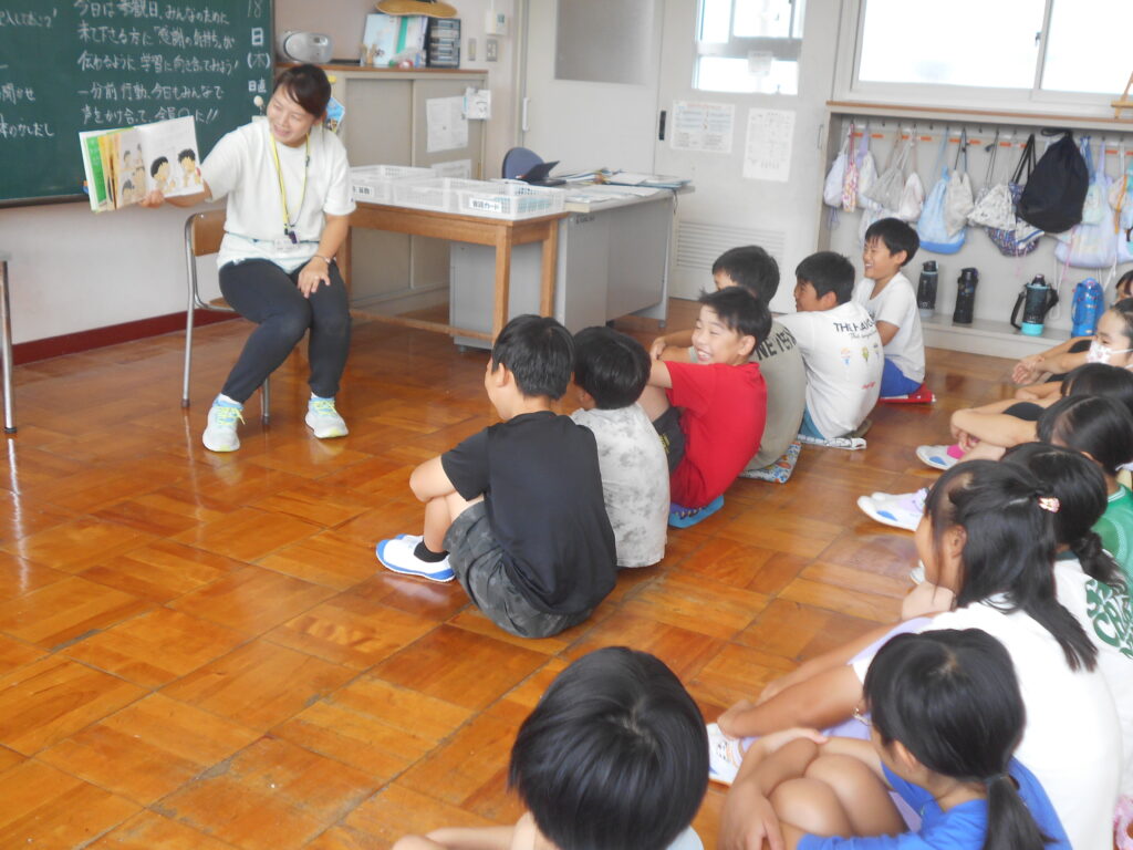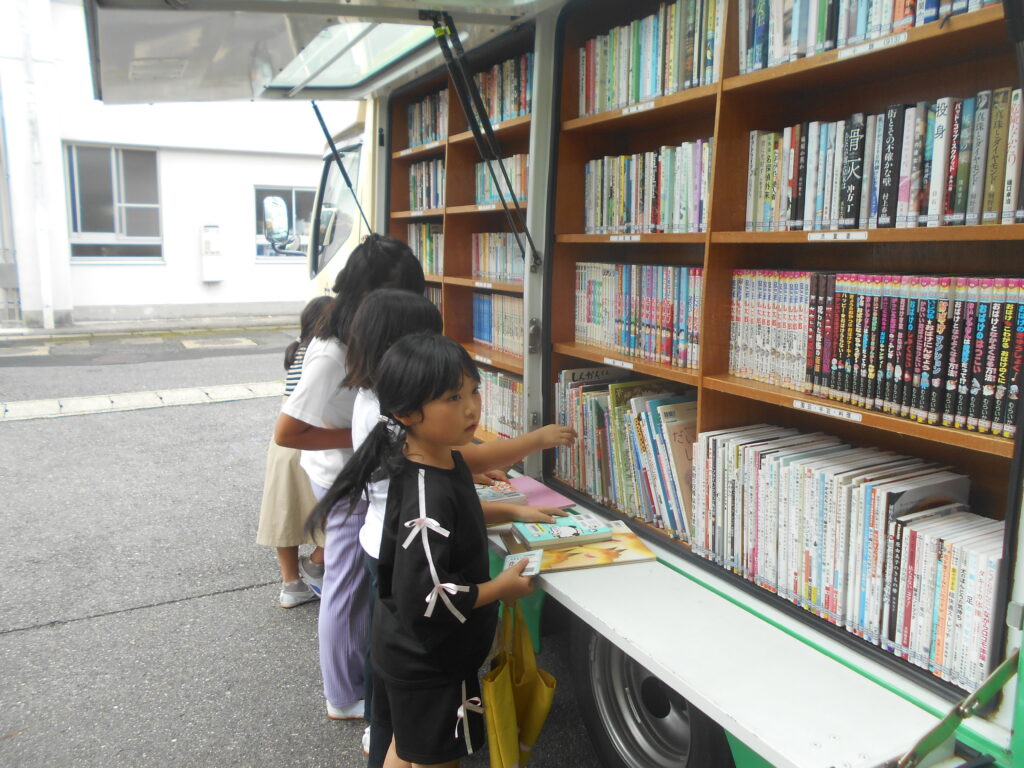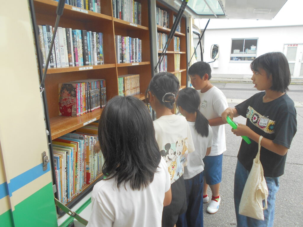 月に一度、福知山市中央図書館からうぐいす号がきてくれます。一人5冊まで本を借りることができます。また、学校団体貸し出しの制度を利用して、市図書館、府立図書館からも本を30冊、50冊と本を借りて教室やブックステーションに配架しています。教職員も木曜日の朝読書の時間に隔週で読み聞かせをしています。