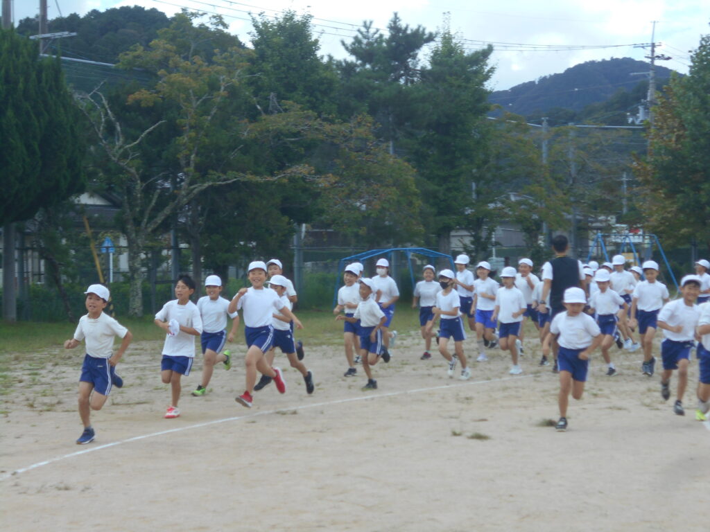 スポーツの秋、読書の秋、芸術の秋、収穫の秋です。10月15日のマラソン大会に向けて毎日、休み時間に5分間全校で校庭を走っています。高学年は外周を低学年は内側のトラックを時間いっぱいがんばって走ります。マラソン大会では全員が約2kmを走ります。目標は去年の自分を超えていくこと、自己新記録を出すことです。ご都合がつくようでしたらぜひ、沿道で声援を送ってください。(雨天時は16日に延期します)