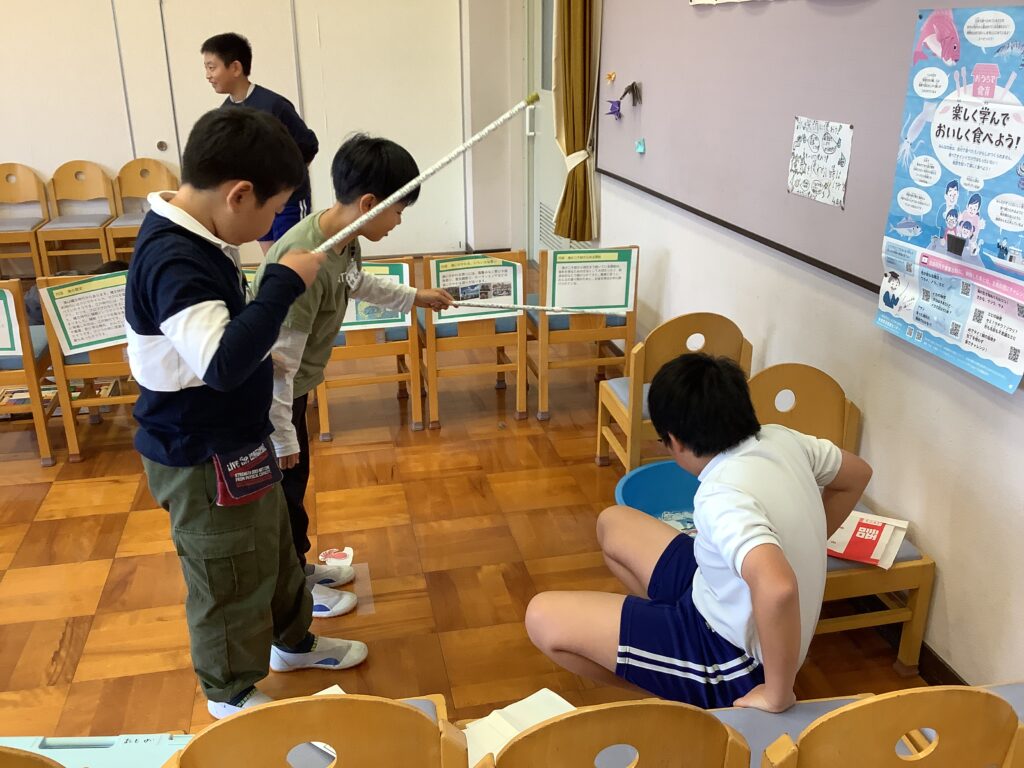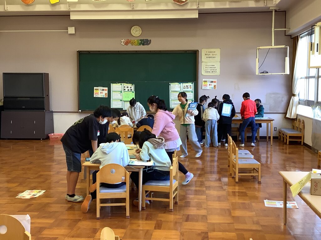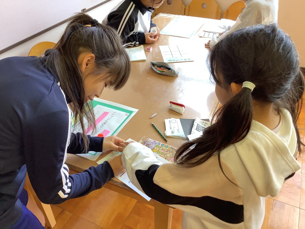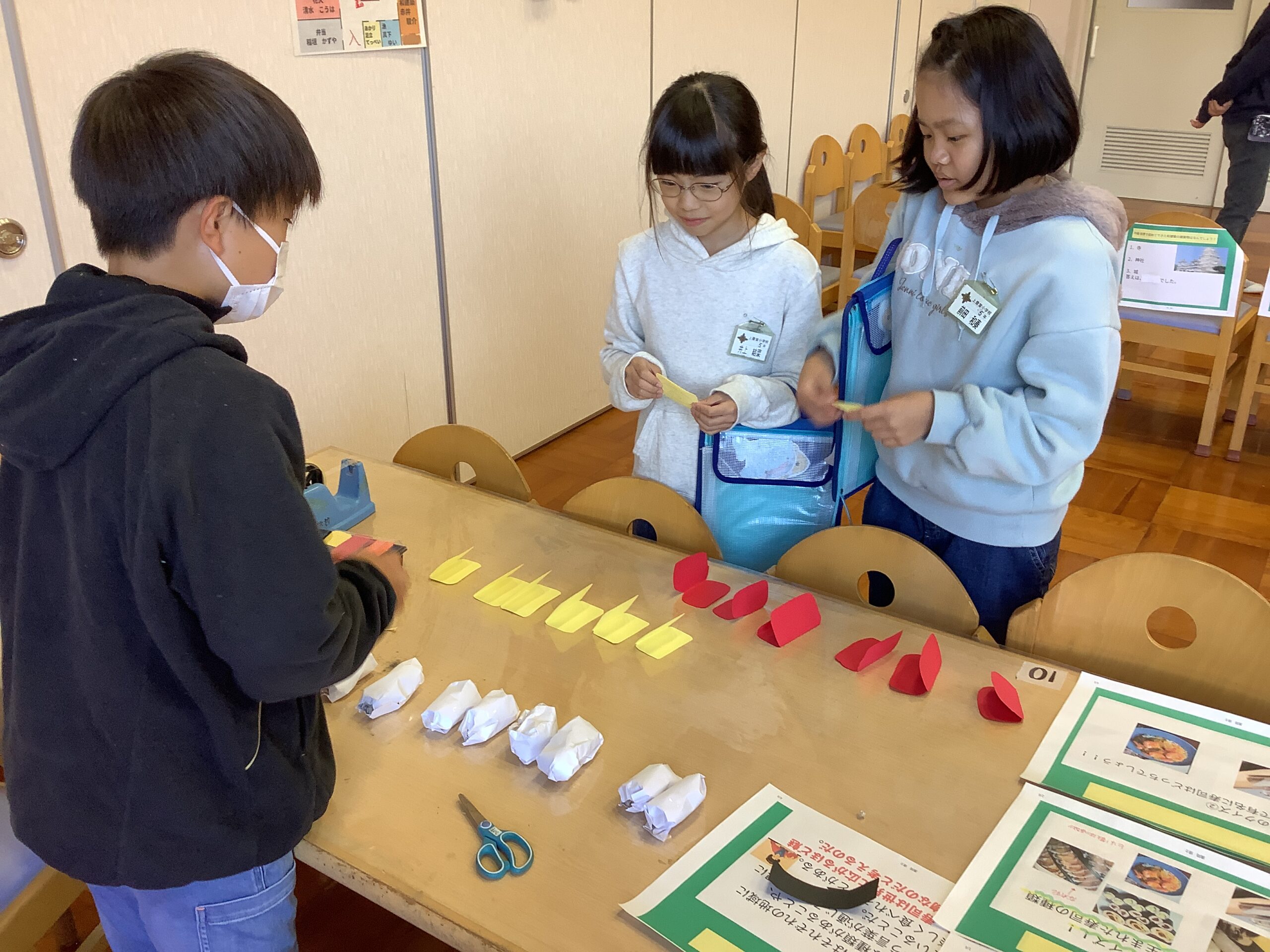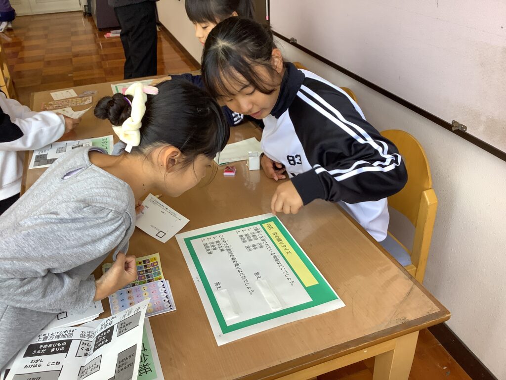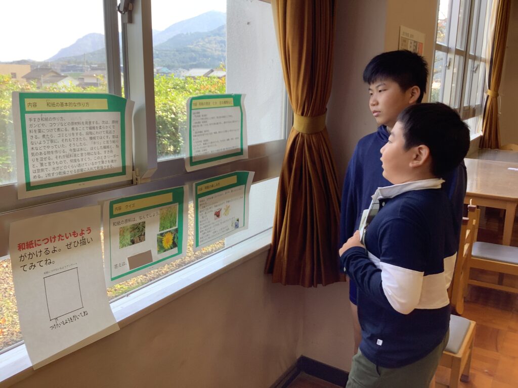 かみとよっ子日誌6年生が国語科の学習で「『獣戯画』を読む」で筆者の魅力的な紹介文の書きぶりを学んだ後、日本の伝統文化の中からテーマを決めて調べたことを紹介文にまとめ、一人一人が日本文化の紹介ブースをつくって上豊万博を開催しました。1~5年生に期間限定のチケットを配付し、11月7日、10日の2日間で下級生みんなを招待しました。
