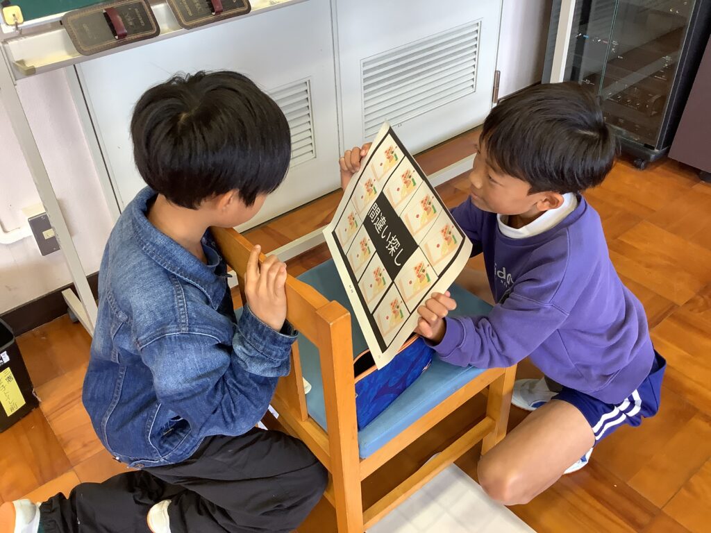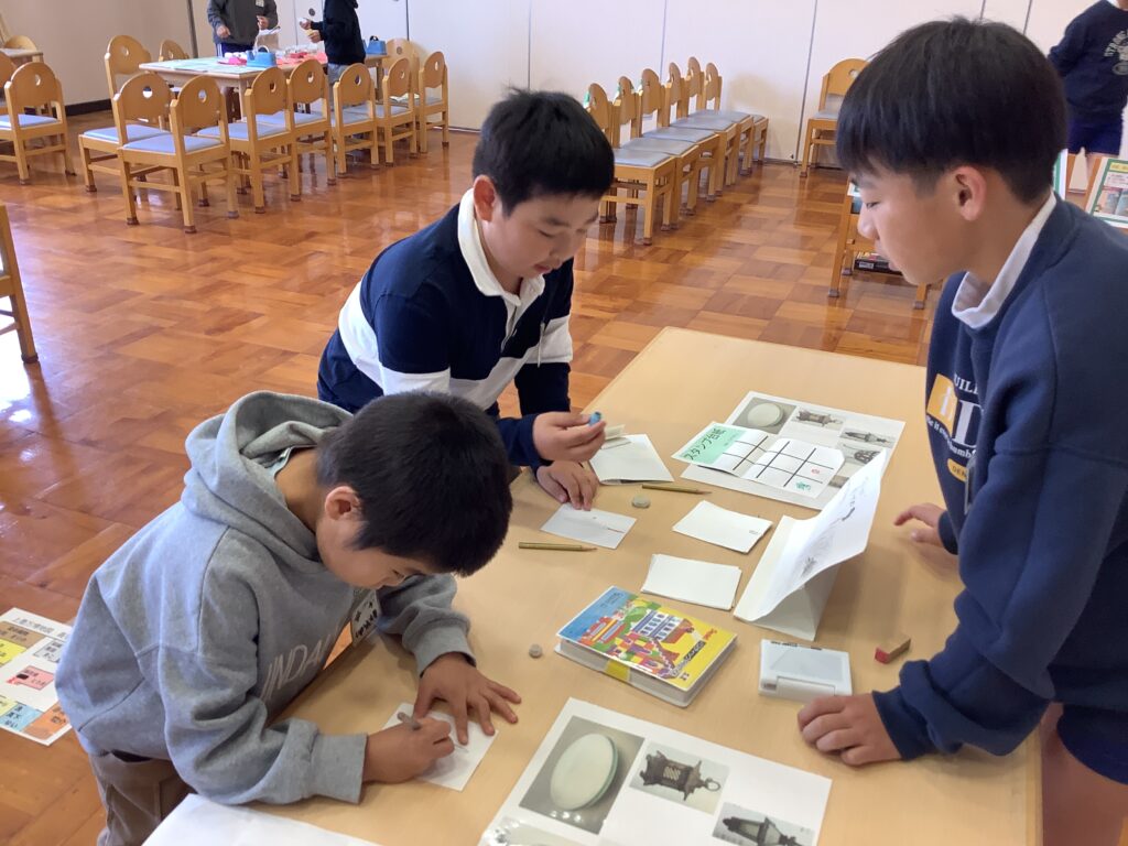 6年生が国語科の学習で「『獣戯画』を読む」で筆者の魅力的な紹介文の書きぶりを学んだ後、日本の伝統文化の中からテーマを決めて調べたことを紹介文にまとめ、一人一人が日本文化の紹介ブースをつくって上豊万博を開催しました。1~5年生に期間限定のチケットを配付し、11月7日、10日の2日間で下級生みんなを招待しました。