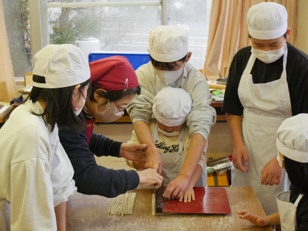 そばうち体験Ⅰ 【1月20日】 かみとよっ子日誌 Twitter Facebook はてブ Pocket LINE コピー 2026.01.20 今日は、そば打ち体験第1弾。3・5年生、1・6年生がそばえぼし会の皆様に教えていただきながらそば打ち体験、打ち立てのそばを試食する体験をしました。