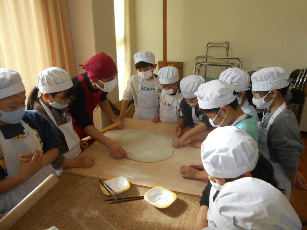 今日はそば打ち体験第2弾。2・4年生がそば打ち体験、試食体験をしました。4年生もとても上手にそば粉をこねたり、のばしたり、包丁で切ったりできました。2年生も教えていただきながら、一生懸命楽しみながらそば打ちをしました。できあがったそばを「大盛りで食べたーい」とおいしくいただきました。そばえぼし会の皆様、ありがとうございました。