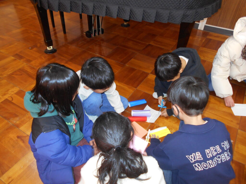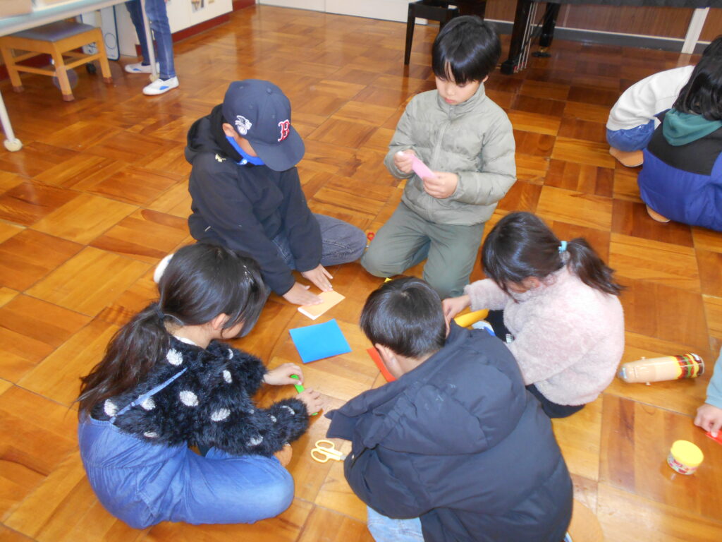 水曜日6校時は、特別時程になっています。5・6年生が委員会活動をしている間、4年生が1~3年生と一緒に、ありがとう集会に向けて花飾りや輪飾りづくりをしてくれました。最後の10分はお楽しみの遊びも考えてくれていました。4年生もリーダーとしてがんばっています。