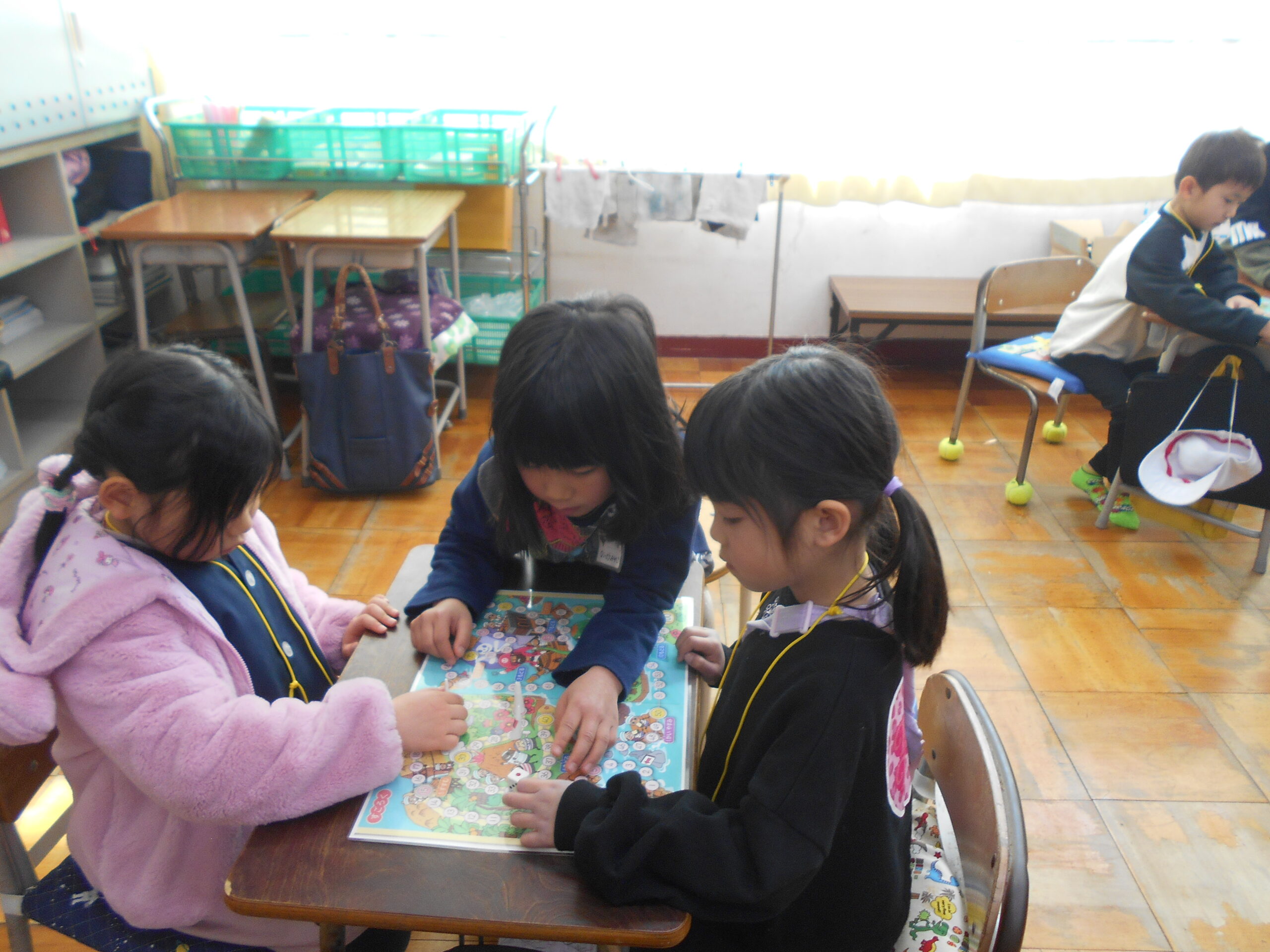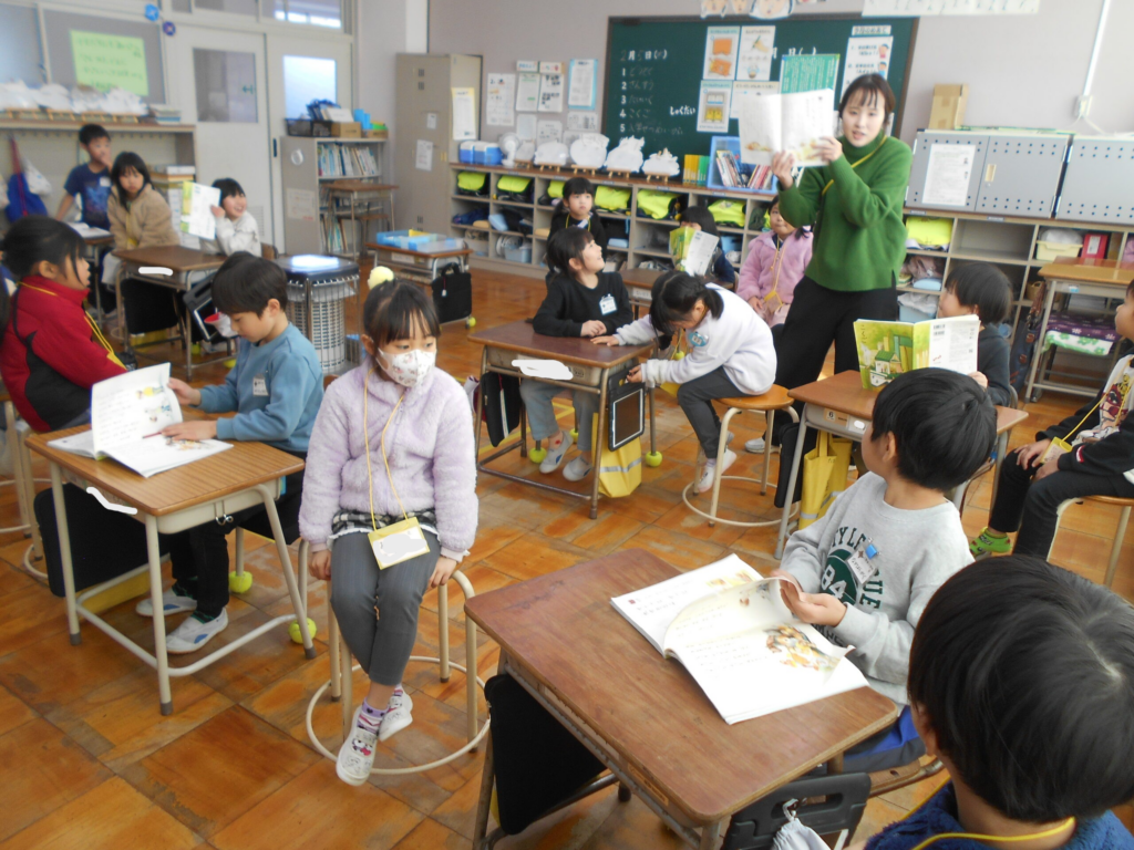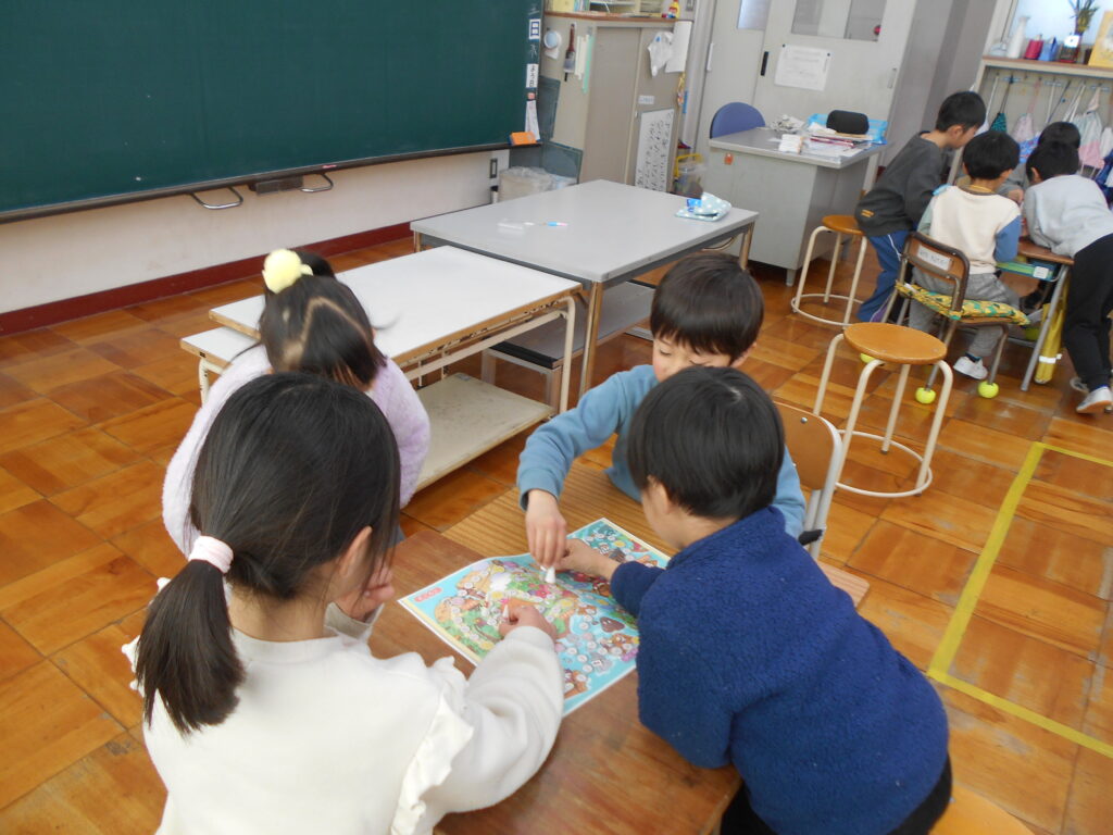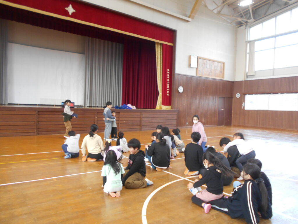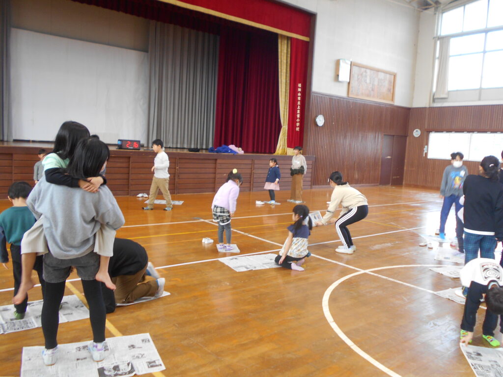 来年度入学してくる新1年生が体験入学で来てくれました。受付には、来年度6年生となる5年生が待っていて名札を付けたり、1年教室に案内したりしました。1年教室では、新1年生になる園児さん達が自己紹介で名前と好きな食べ物を言いました。1年教室では1年生の音読を聞いたり、一緒にすごろくをしたりして過ごしました。その後、5年生が迎えに来て、体育館で一緒にレクリエーションや運動遊びをして過ごしました。1年生がお兄さんお姉さんとしてがんばっていました。もちろん、5年生は優しく親切に新1年生に関わっていました。4月に入学してくれる日が楽しみです。