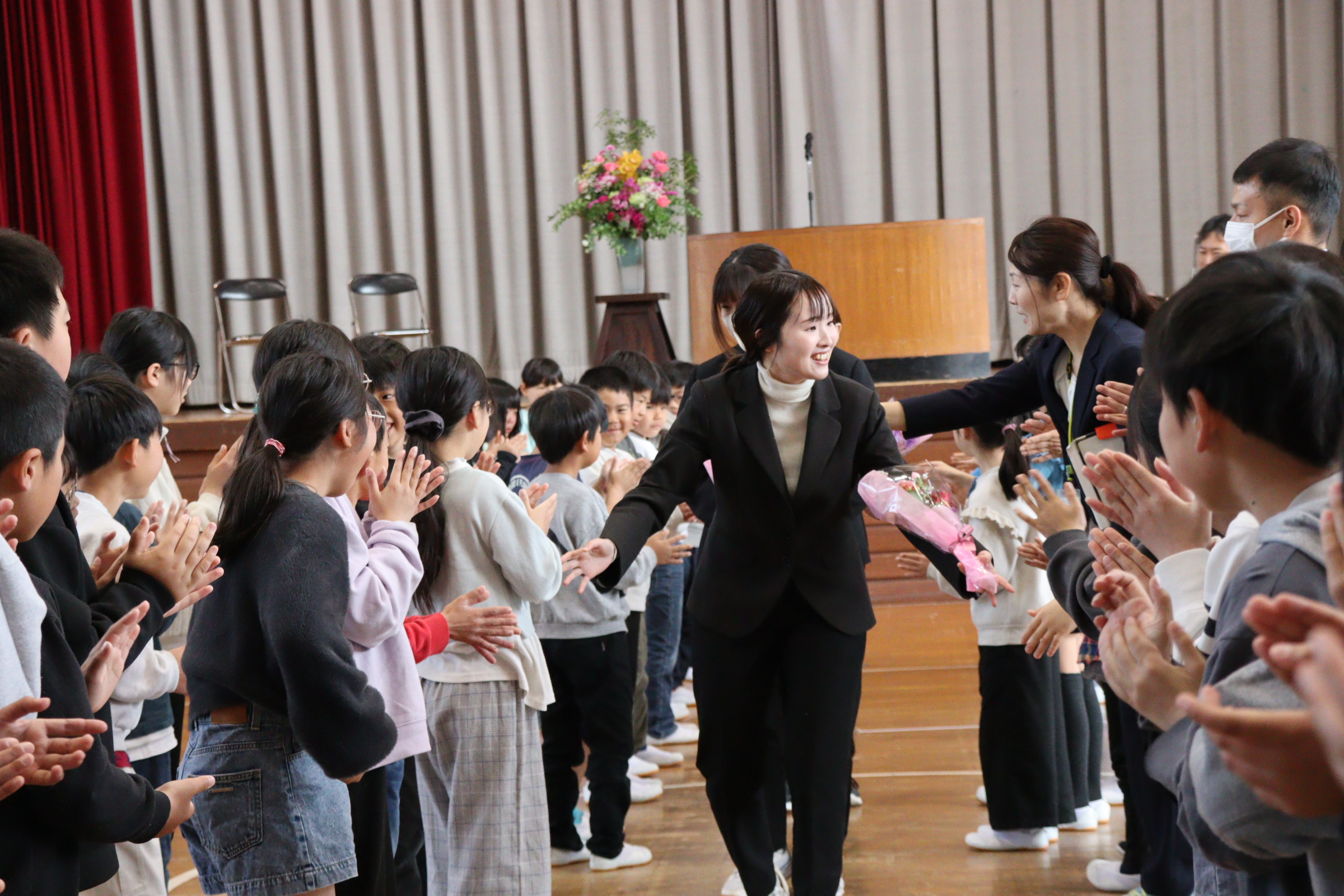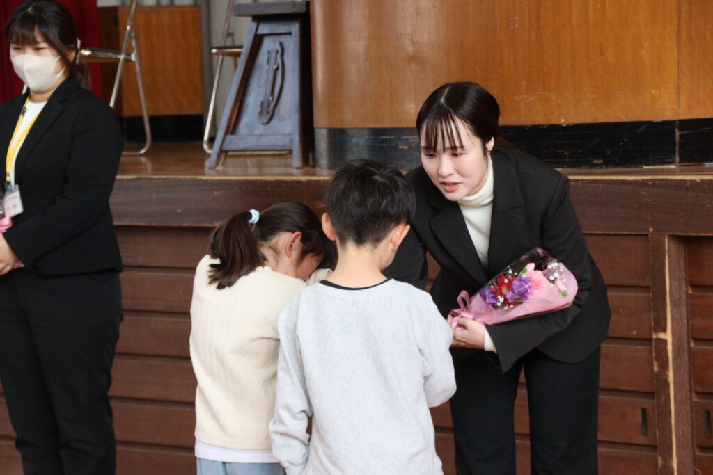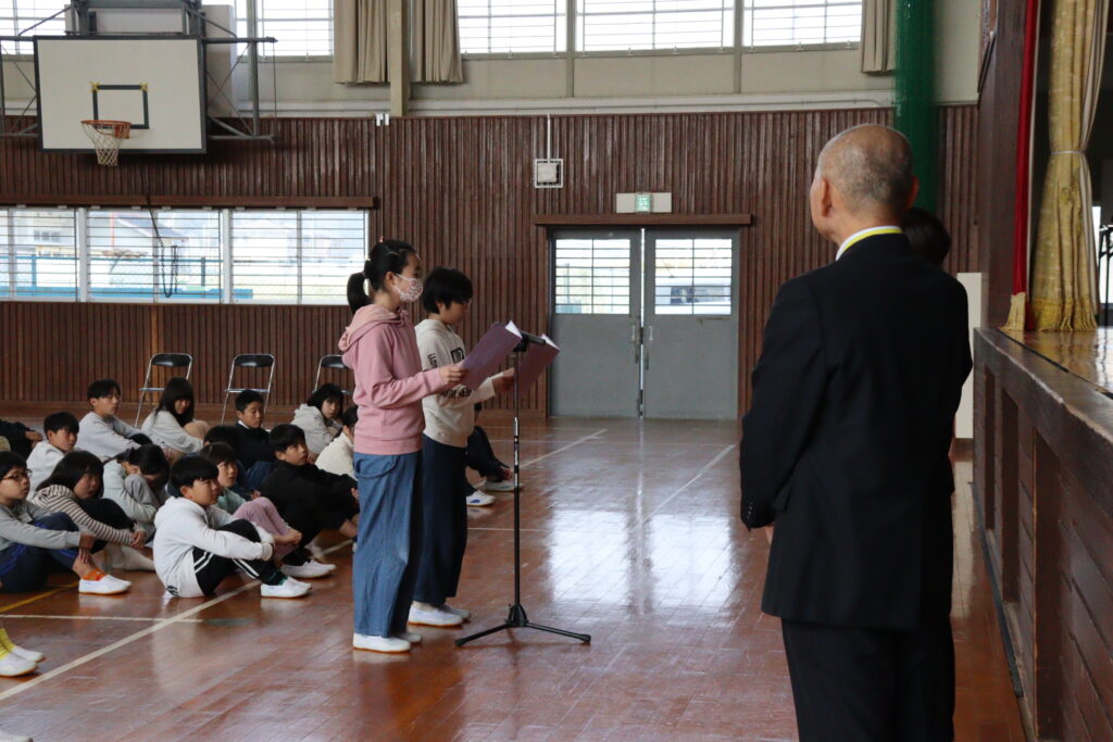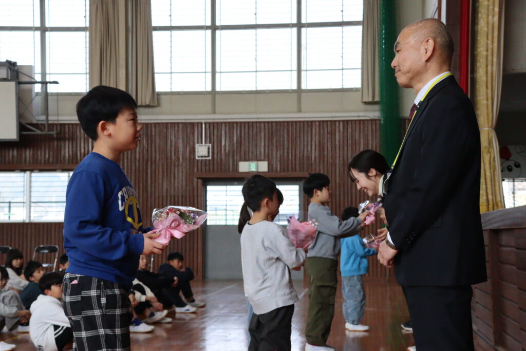 この春の異動で4名の職員が転出することになりました。春休み中にもかかわらず、離任式に多くの子どもたちが集まってくれました。送迎、送り出し等、ありがとうございました。在職期間に違いはありますが、上豊富小学校の保護者、上豊富地域のみなさまにたいへんお世話になりました。ありがとうございました。新学期は4月7日がスタートです。新班長を先頭に3月の登校班で安全に登校できますように。