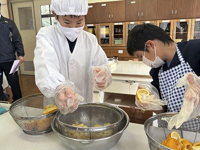 そして、柚子の切り方や煮込み方、砂糖の種類を変えて、味や食感にどんな違いが出るかの実験も行いました。 この後、全校に食べてもらってアンケートをとり、自分たちの理想の味を作るための作り方を考えていきます。