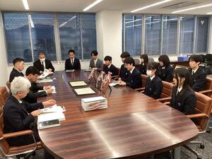 指導担当教員から受賞経緯の報告の後、教育長からお祝いの言葉をいただき、また懇談の中で、課題研究の内容や活動で工夫したこと、また農業鑑定競技会での勉強方法など、生徒から専門学科の取り組みを直接お話することができました。