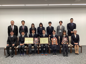 2025年11月17日(月)に、10月22日23日に開催された日本学校農業クラブ連盟大会西関東大会において、プロジェクト発表分野Ⅱ類で最優秀賞(文部科学大臣賞)、農業鑑定競技会分野草花において最優秀賞を受賞したことを受け、教育長、指導部長、高校教育課長に受賞の報告を行いました。