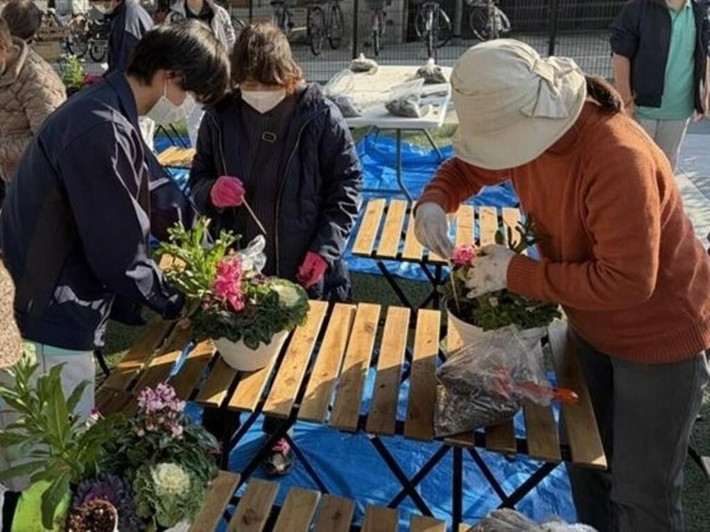 11月21日(金)に、トート広場において植物クリエイト科資源工学専攻生徒寄せ植え体験会を行いました。