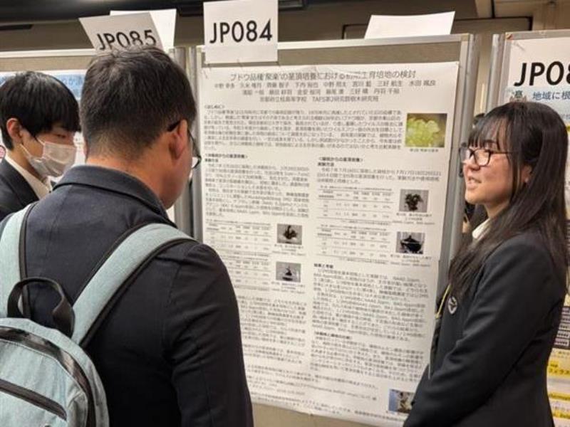 本校からは植物バイオテクノロジーの技術で保存・増殖している、ブドウ'聚楽'や、キクタニギク、フジバカマの研究内容を発表しました。