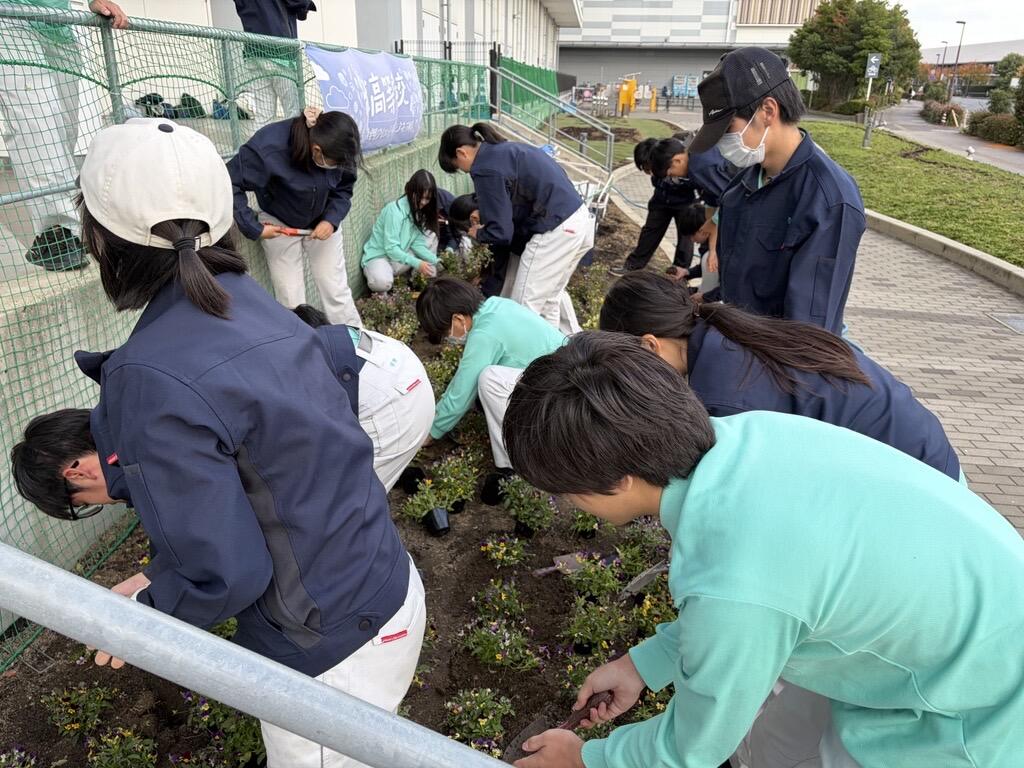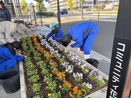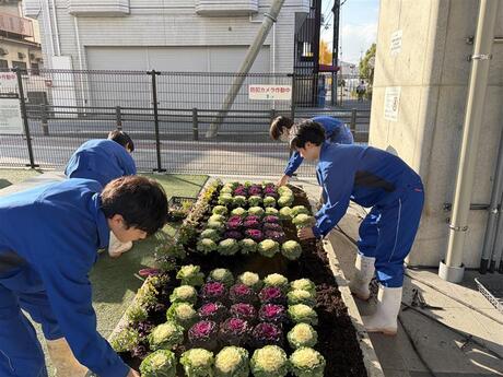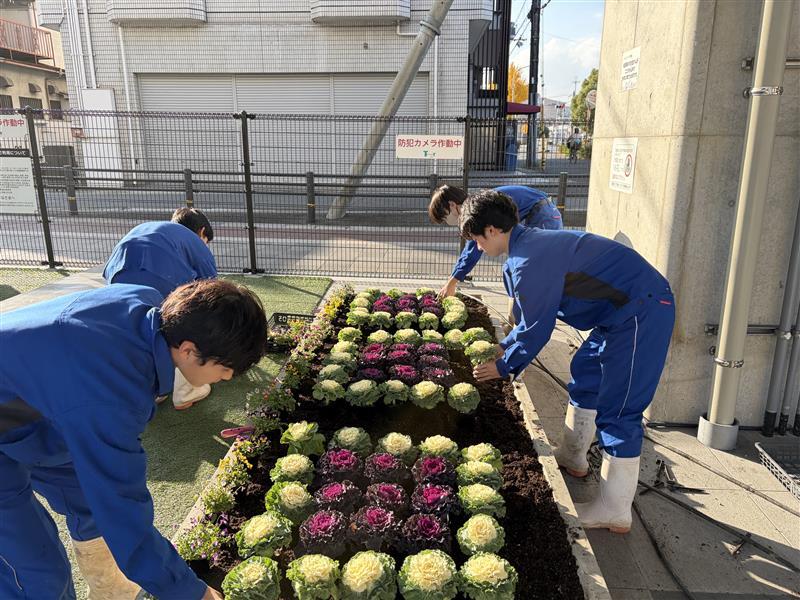 5月12日(月)、植物クリエイト科資源工学専攻の生徒が、イオンモール京都桂川南西花壇の植え付けを行いました。