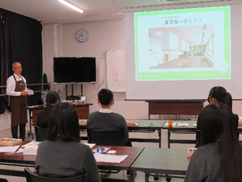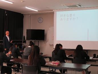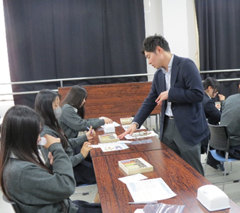 香老舗 松栄堂 代表取締役社長 畑 元章 様、企画事業部 秀島 佑典 様をお招きし、お香の種類や原料、お香の歴史、和歌や古典文学との関わり等のお話しをしていただきました。