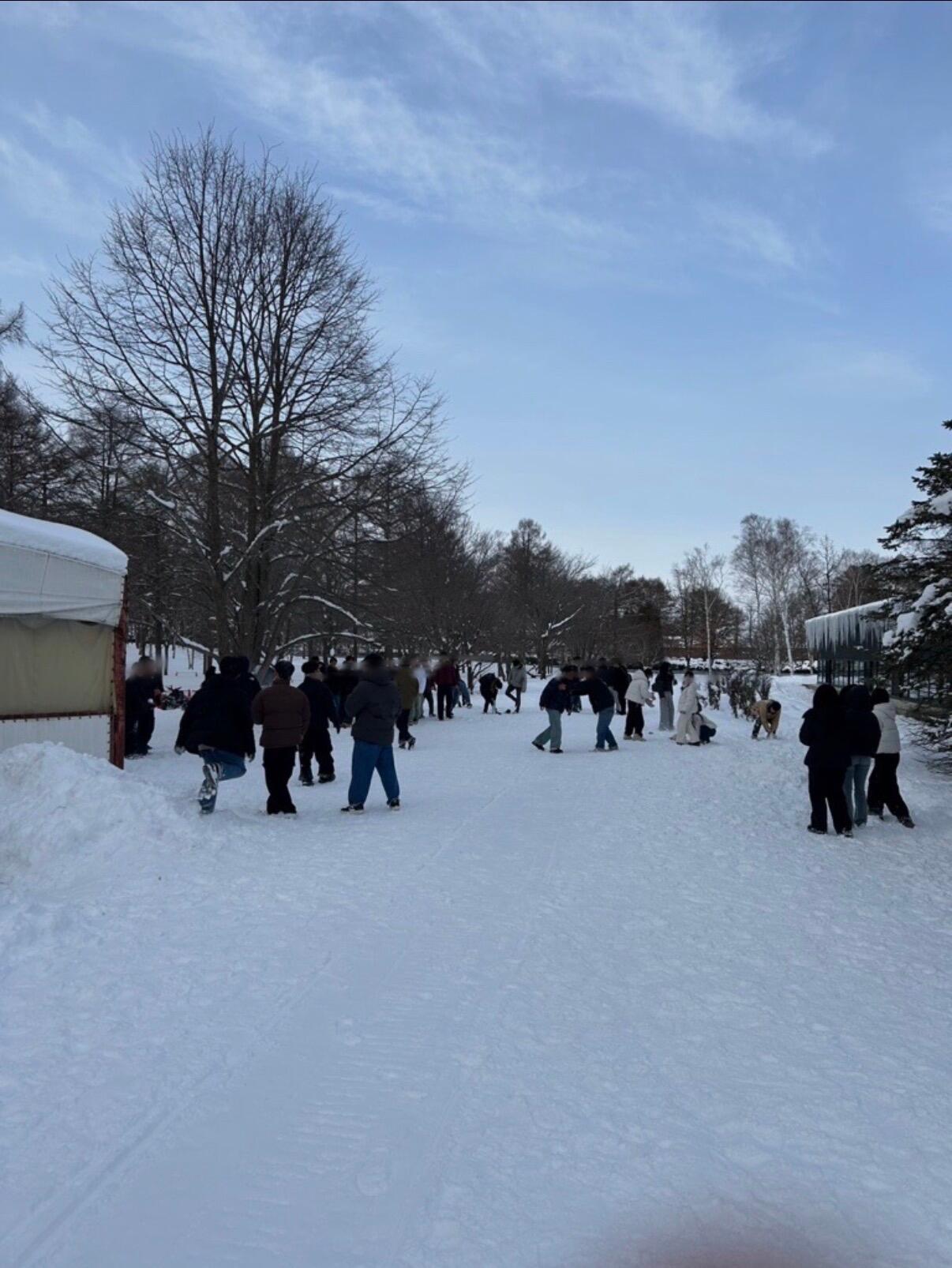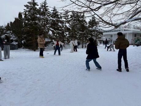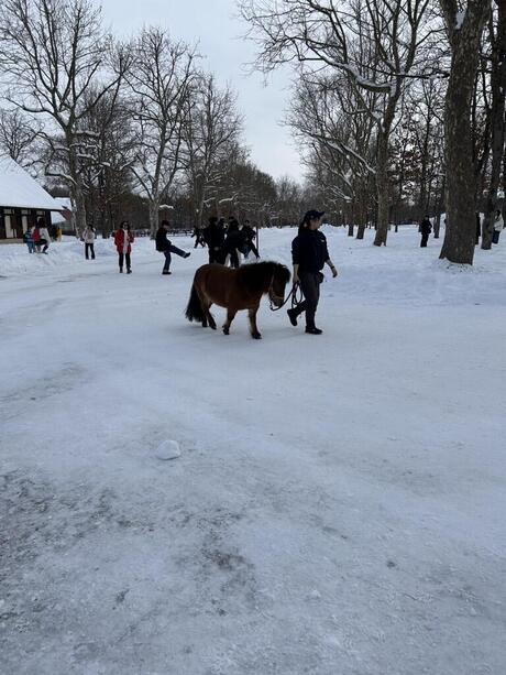 食後は園内で馬とふれあったり、思いきり雪の上を走り回ったりと、それぞれが北海道ならではの魅力を満喫。なかでも雪合戦は大盛り上がり!クラスやコースの垣根を越えて、みんなが笑顔で楽しんでいる姿がとても印象的でした。