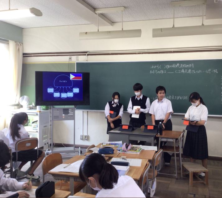 先週は、1年の社会科でアジア州のパフォーマンス課題の発表を行いました。 アジア州の授業の冒頭で、「アジア州にプラスチック工場を作るとしたら どの国が一番適しているのだろう?」という課題を提示した上で、その結論を導くために どんなことを学習しないといけないか、見通しを立てて学習した発表でした。 発表した班は学年で36グループ、 東アジア/東南アジア/南アジア/西アジア/中央アジアの全地域から国を 選択していました。 答えのない課題に粘り強く答えを出そうとしていた姿が印象的でした。