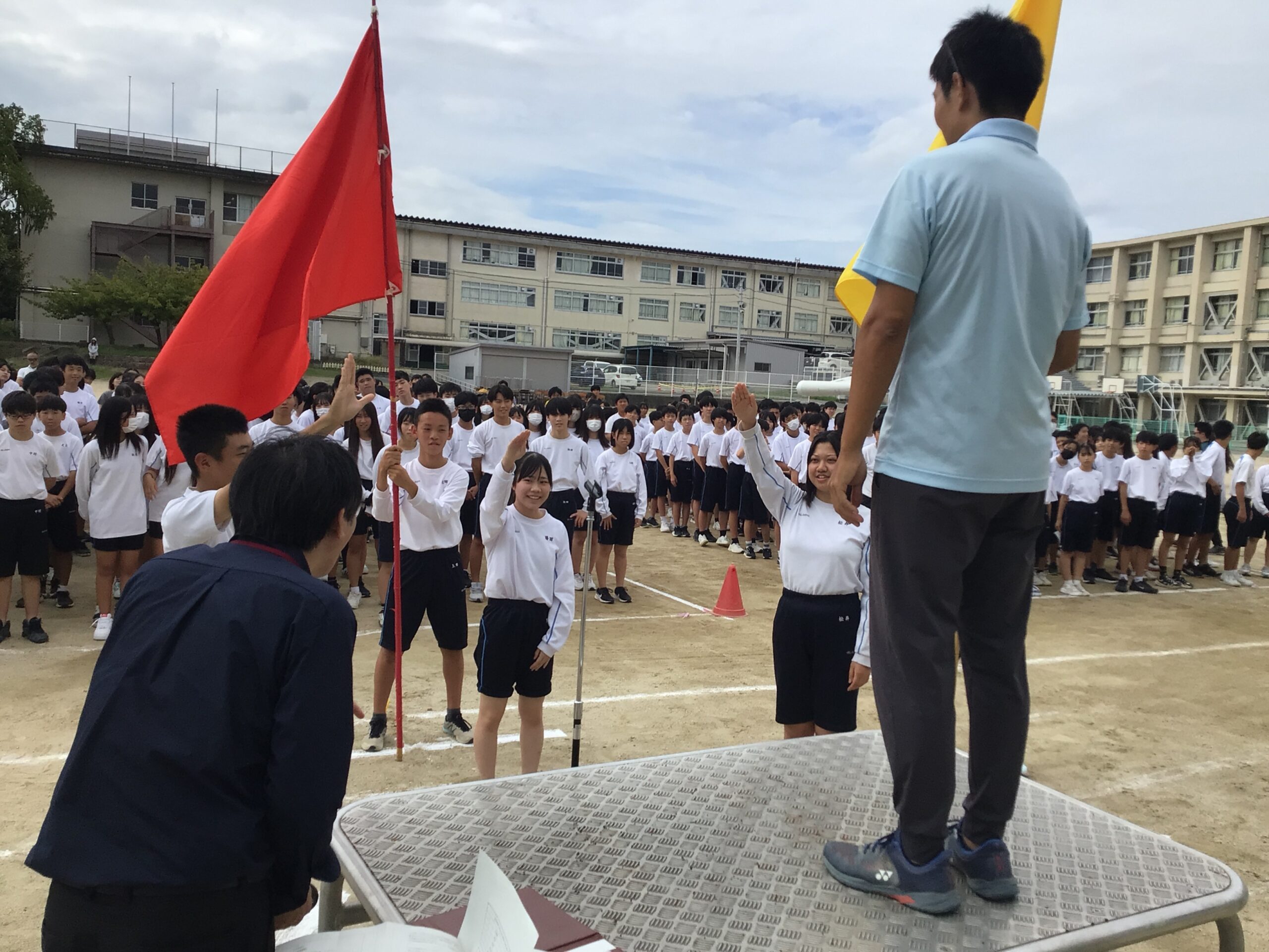 体育大会の取組②~全体練習~ 学校日誌 Twitter Facebook はてブ Pocket LINE コピー 2025.09.25 昨日は、午後から全体練習を行いました。 開会式や応援パレードについての見通しを持つことで、 主体的に活動できることを実施の目的としています。 開会式での集合、選手宣誓、準備体操に始まり、 応援パレードの隊形移動と全員で流れを確認しました。 Post Views: 378