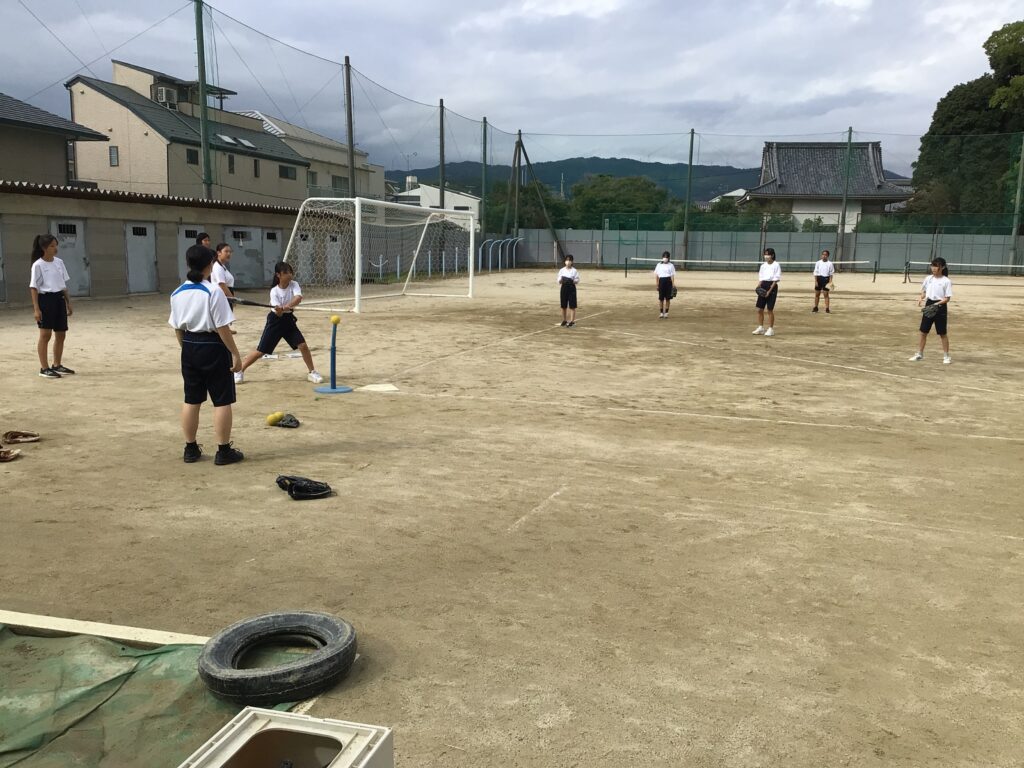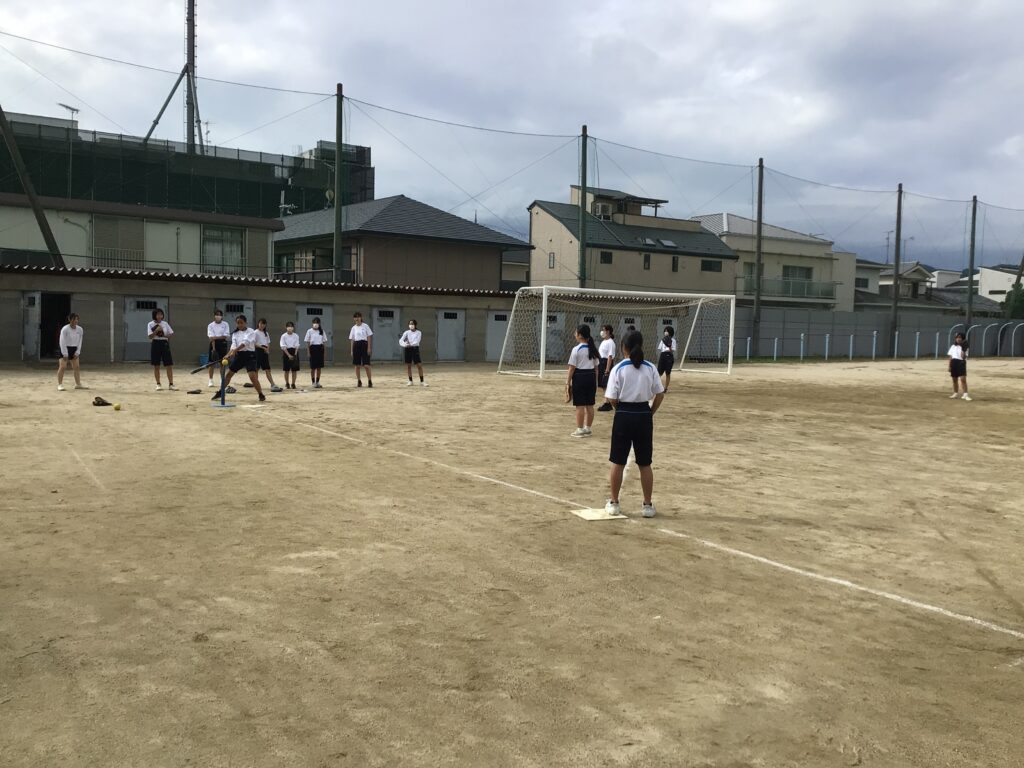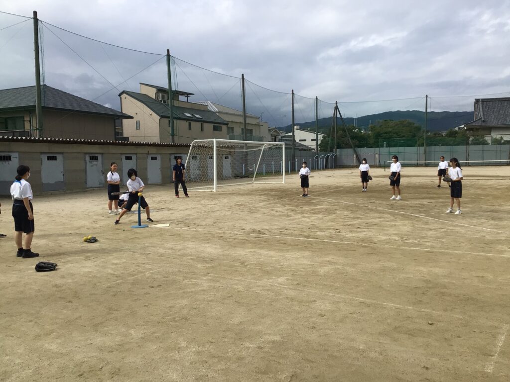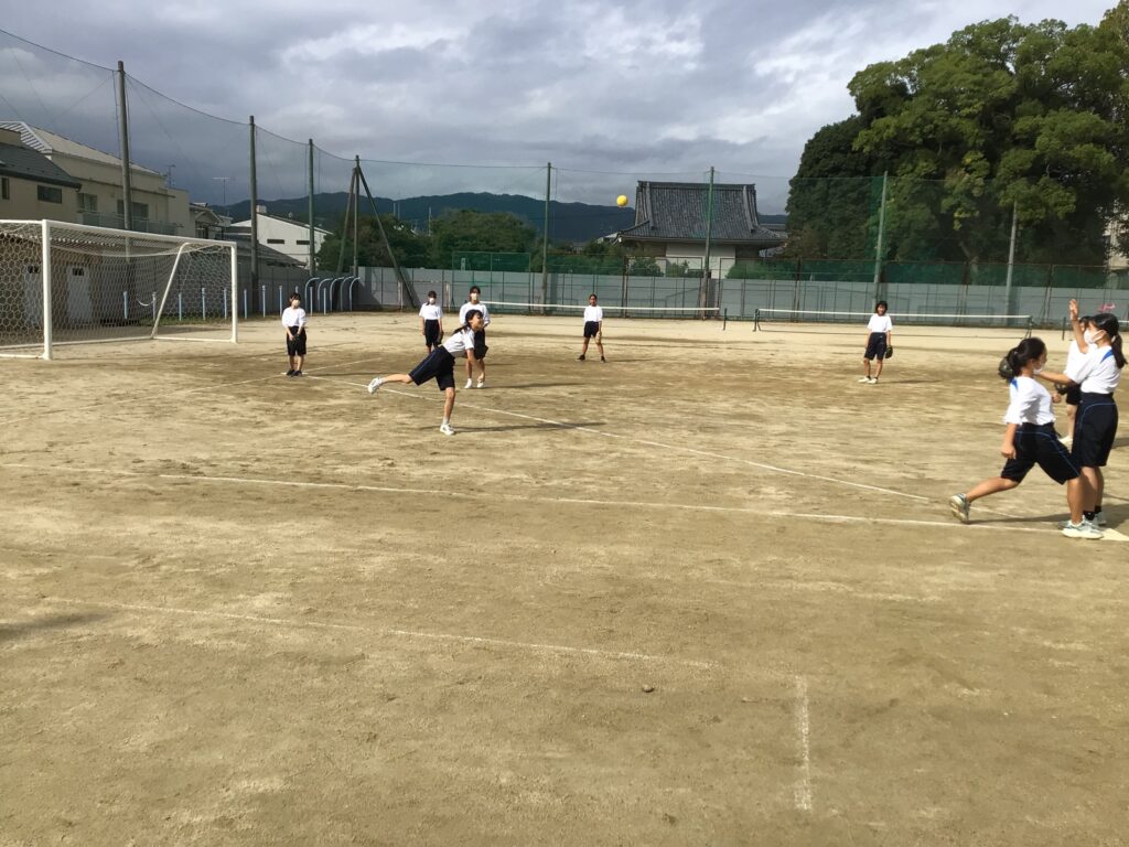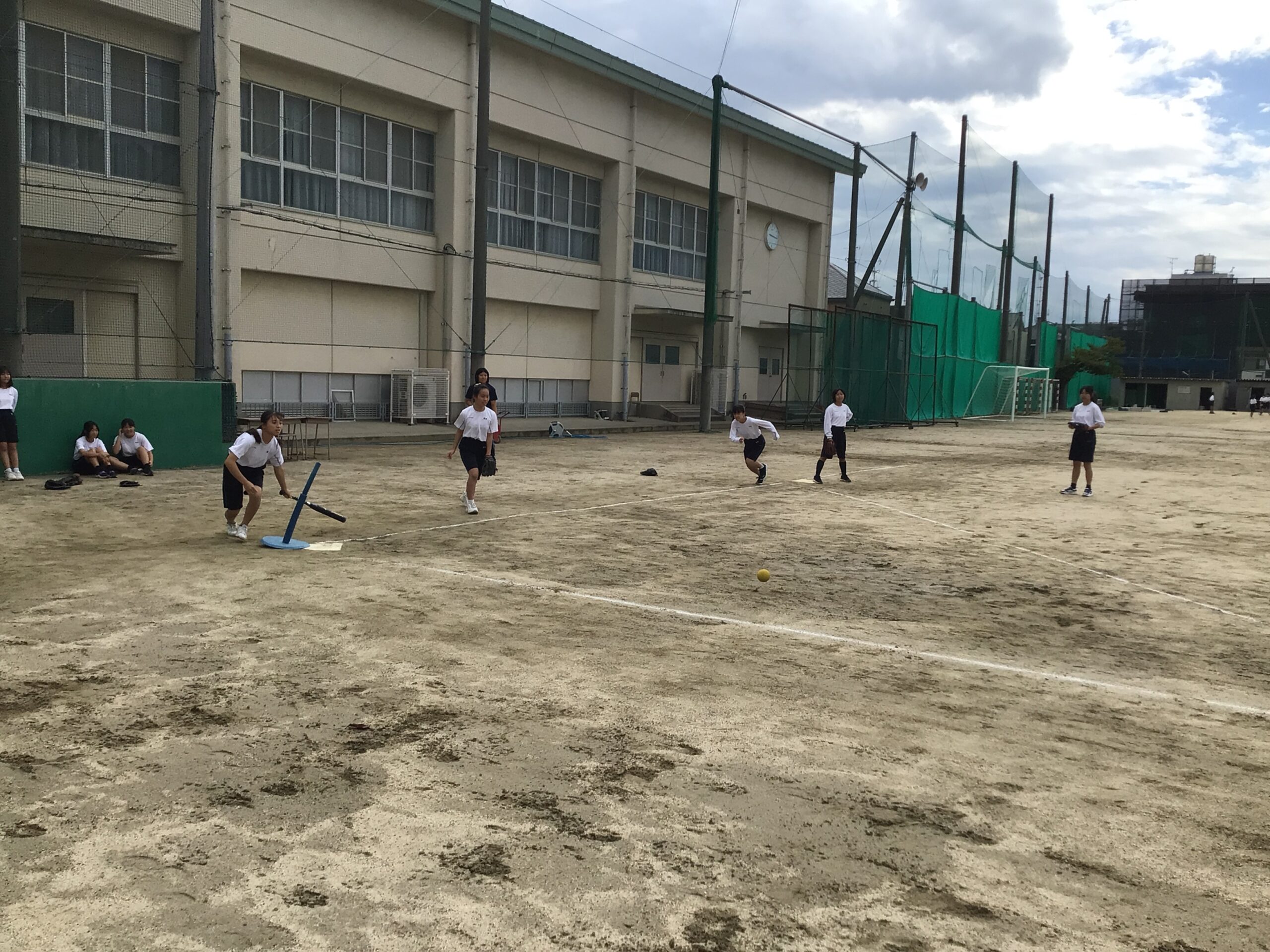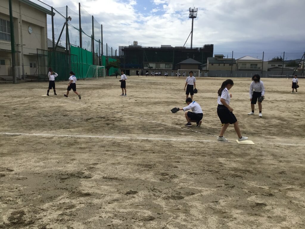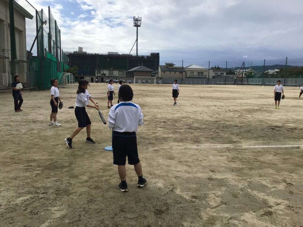 1年の保健体育科では、ソフトボールの単元で 「4点取って3点に抑えるためのチームのオーダーを考えよう」という課題のもとに チームで話し合って打順を考えました。 足が速い人、捕球のうまい人、仲間の得意なところが前面に出るための 守備配置と打順を仲間と試行錯誤しながら設定して試合に臨んでいました。