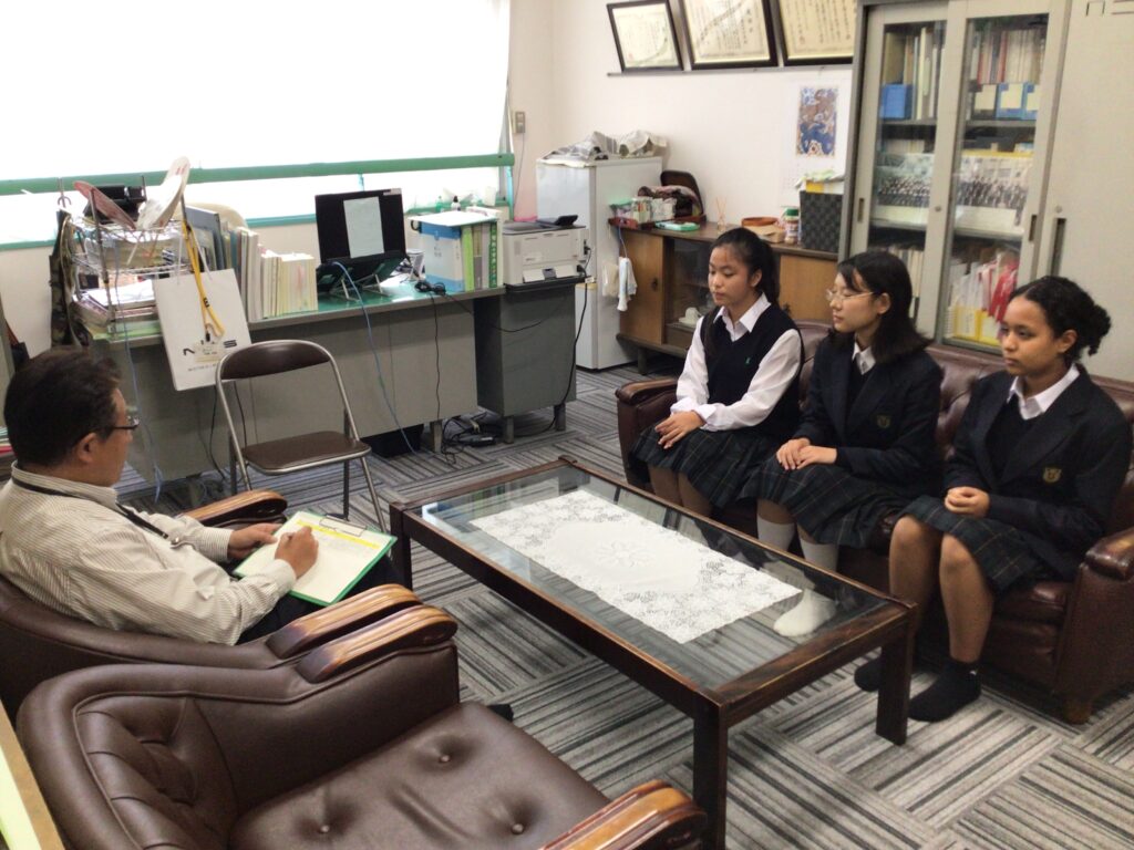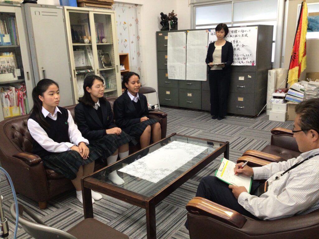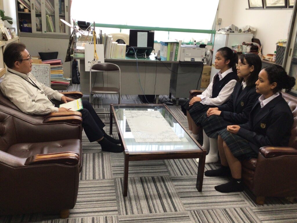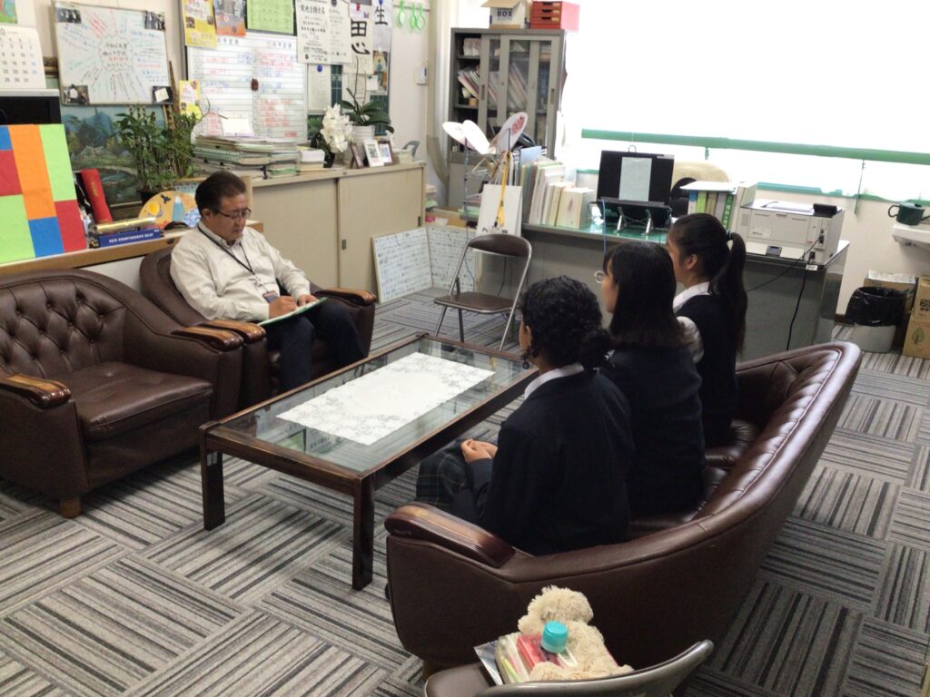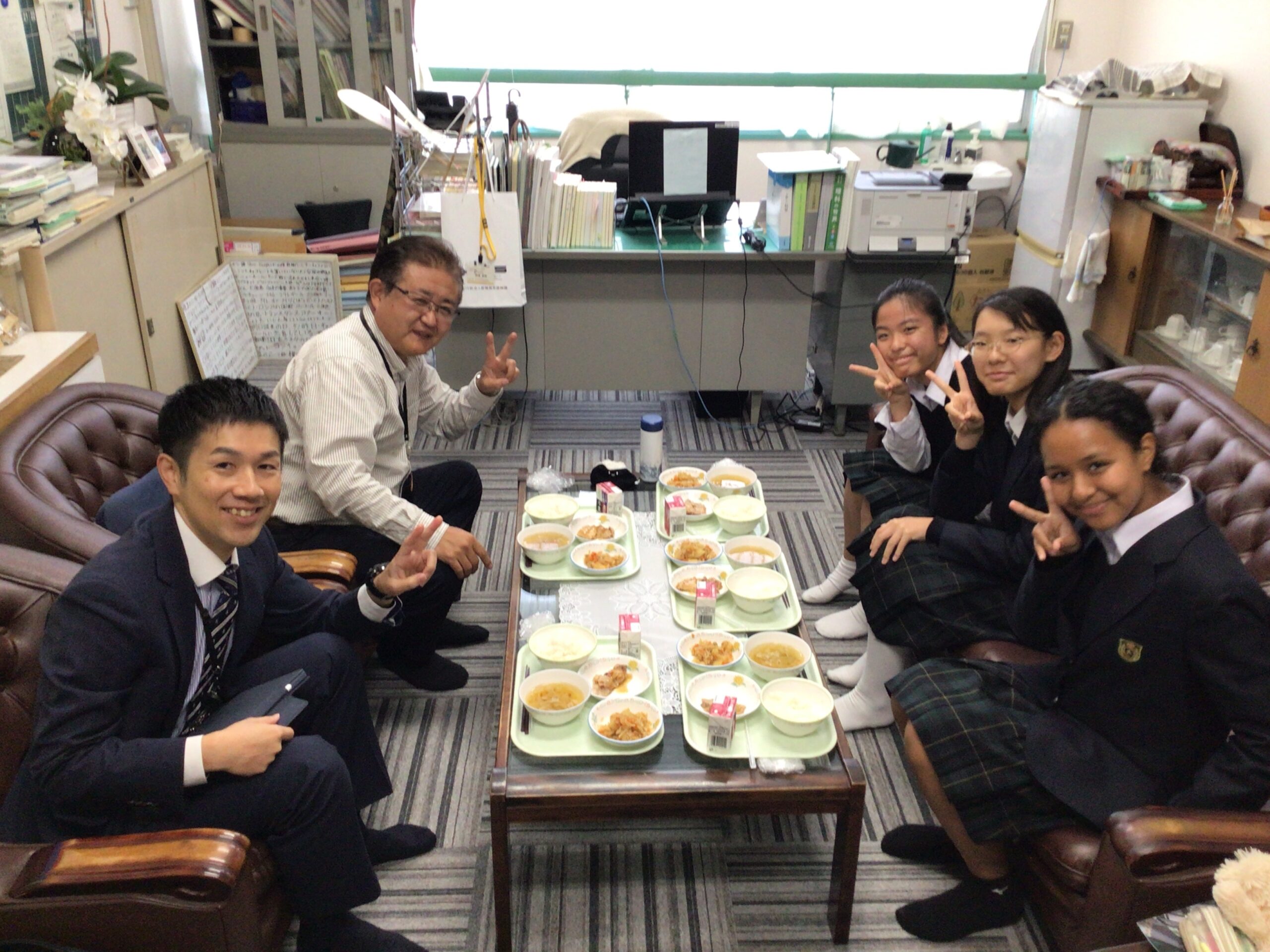22日に、英語スピーチ大会に向けて出場する3人の生徒が校長室で ランチミーティングを行いました。 給食を食べながら、出場する生徒のみなさんから自己紹介をしながら、 どんな思いでスピーチ原稿を作成しているのか出場者から思いを伝えました。 校長先生からア当日のスピーチに向けての心構えについてアドバイスをいただきました。 文化祭の取組も毎日ありますが、スピーチ大会で自分の思いを精一杯伝えられるように 日々の練習を頑張る3人です。応援をどうかよろしくお願いいたします。